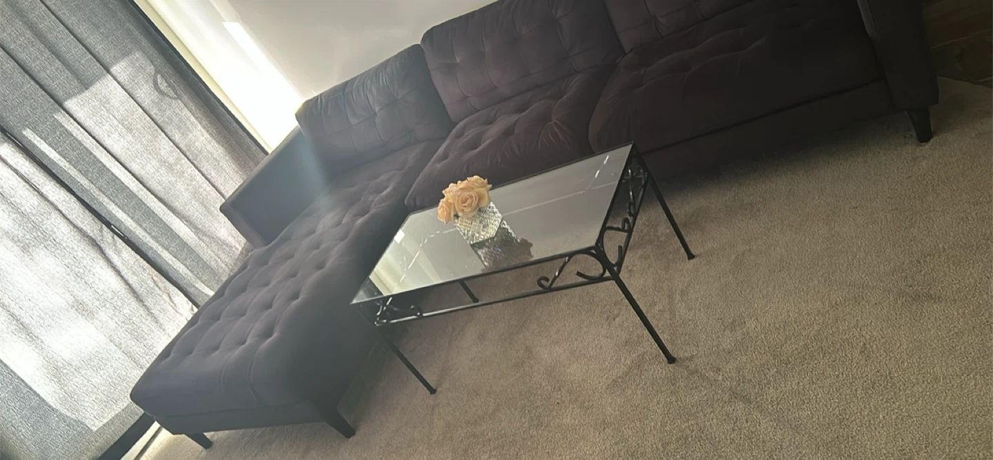 Glass Top Coffee Table with Black Metal Frame