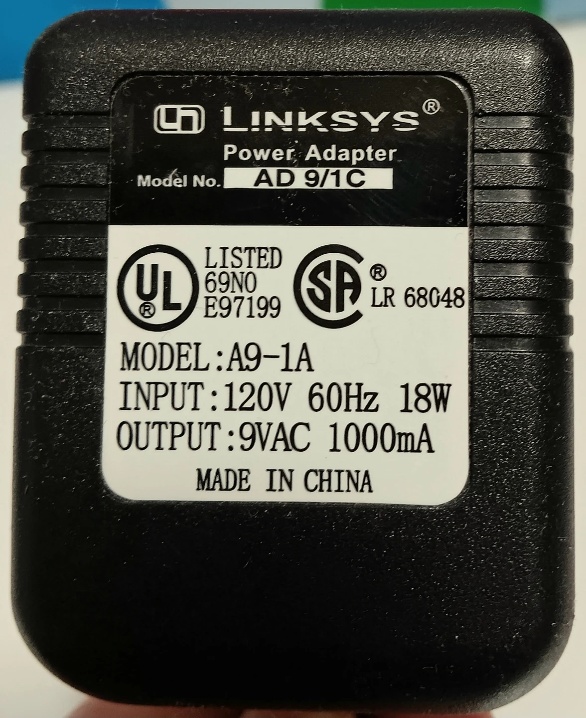 This Linksys Power Adapter, model AD 9/1C, is used but in good condition and fully functional. It outputs 9VAC at 1000mA, suitable for various Linksys devices. This has been tested to ensure reliability. Here are the specs: * Model: AD 9/1C * Input: 120V 60Hz 18W * Output: 9VAC 1000mA Looking to power up your device? Well, if you see this ad, the adapter is available! Grab it before it disappears! Excellent condition. Open to bundling with other items I have listed. Grab a deal before it's gone. I'm Downsizing. From a VF, SF, PF, and BF home. E-transfer is not available at the moment. Pick up Main Street and Red River Blvd. Delivery charges apply if you like it delivered within city limits. Please see my other ads. Thank you!