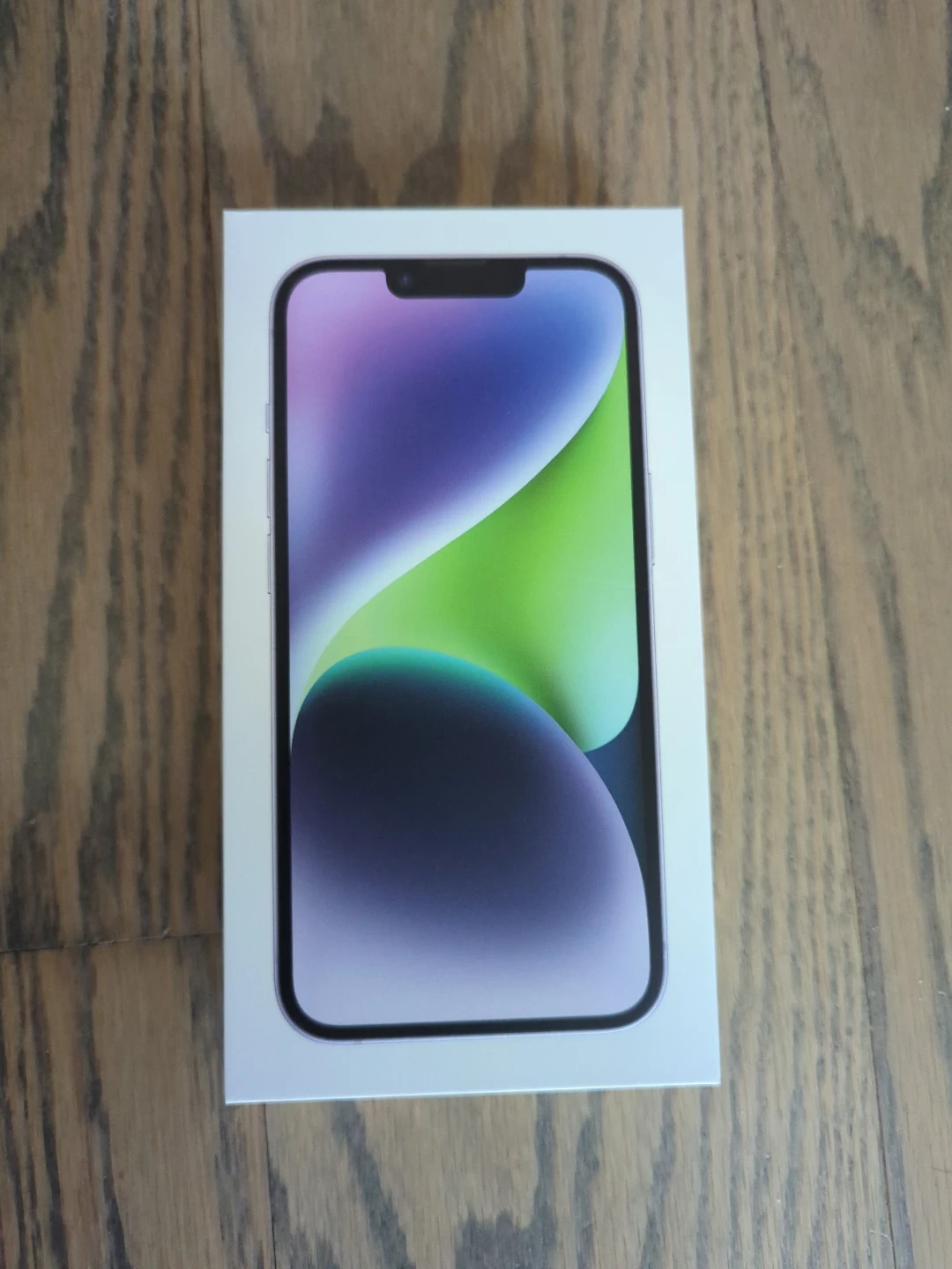 This is an Purple/ Lavender Apple iPhone 14 in its original box. Open box. Includes USB-A to Lightening cable.