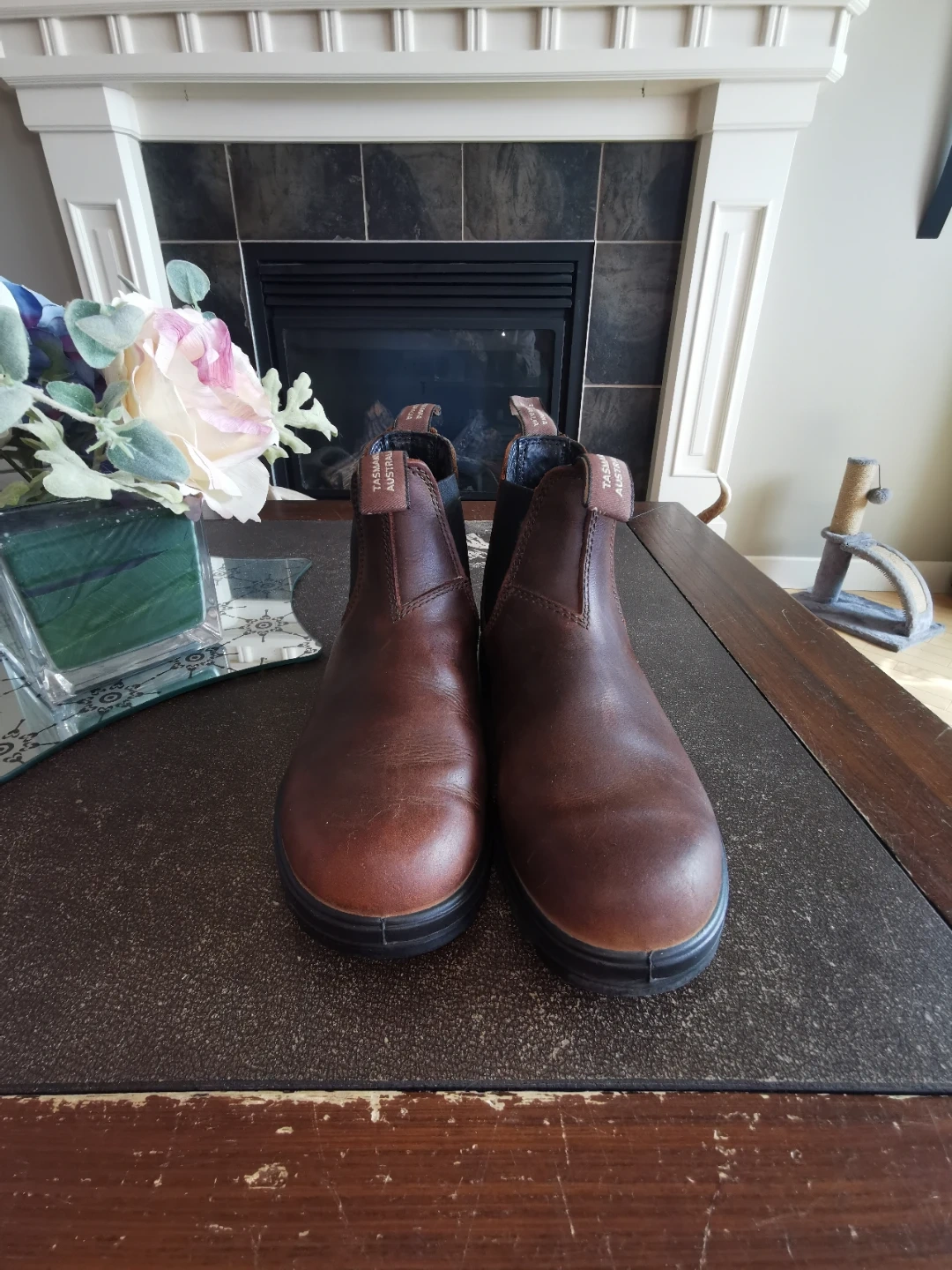 These classic Blundstone Chelsea boots are made with durable brown leather. They're perfect for everyday wear and feature elastic side panels for easy on and off.