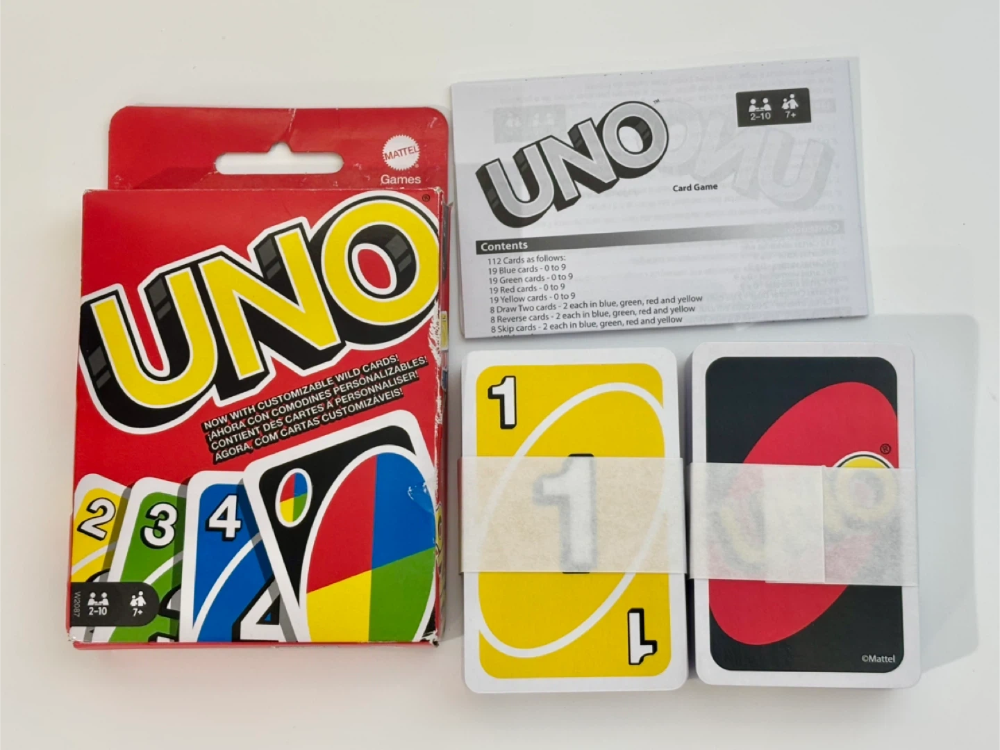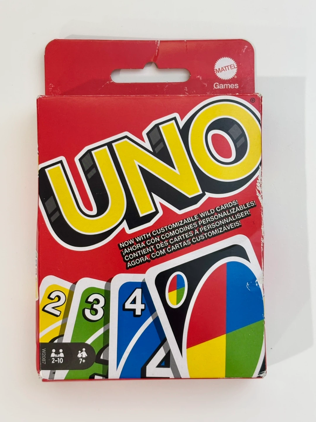UNO card game with customizable wild cards. Includes 112 cards. Recommended for ages 7+ and 2-10 players. A fun game for the whole family!