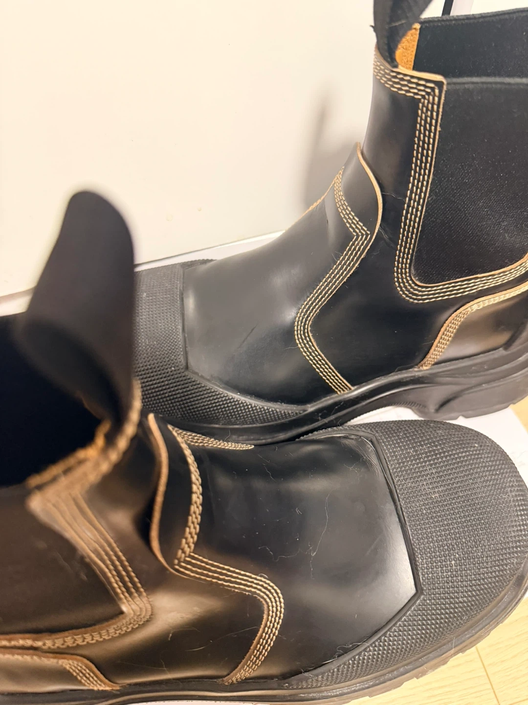 Maison Margiela black leather ankle boots. These feature elastic side panels and a chunky lug sole. They're perfect for adding a stylish edge to any outfit.authentic comes as is … still very good condition pick up north York Leslie Sheppard