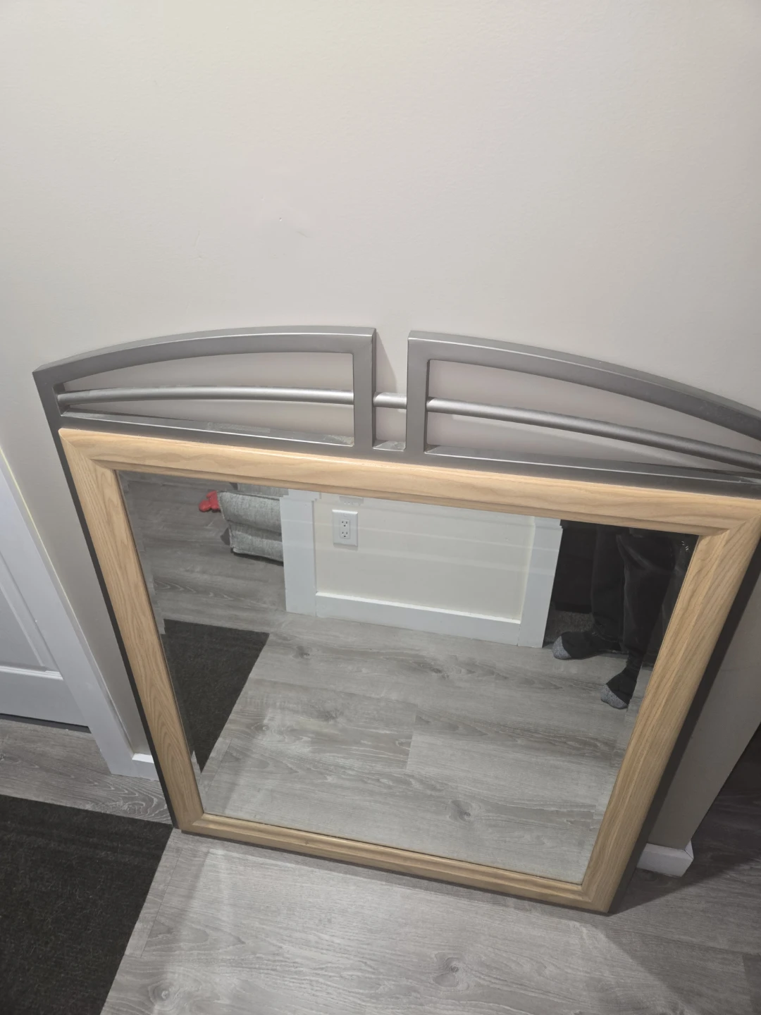 Wooden Frame Mirror with Metal Accent