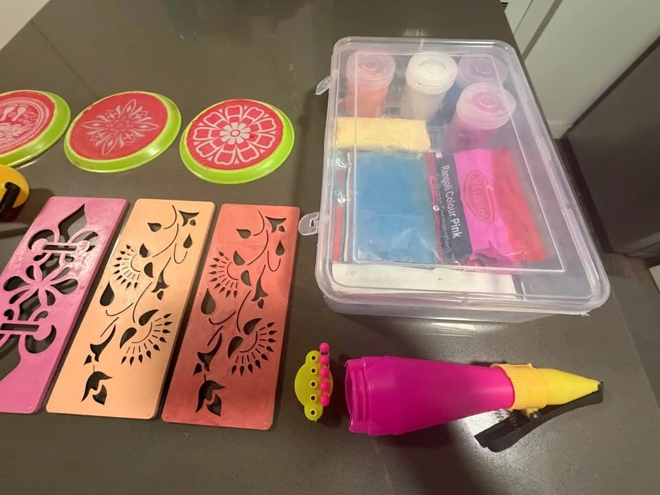 Buy & SellRangoli Kit with Stencils and Coloring ToolsRangoli Kit with Stencils and Coloring Tools$8Perfect for decorating home during traditional festivals. Includes white and color rangoli.WHERE TO MEETCheck LocationView MapSELLERRakesh MCollege Park818 reviews0 chats