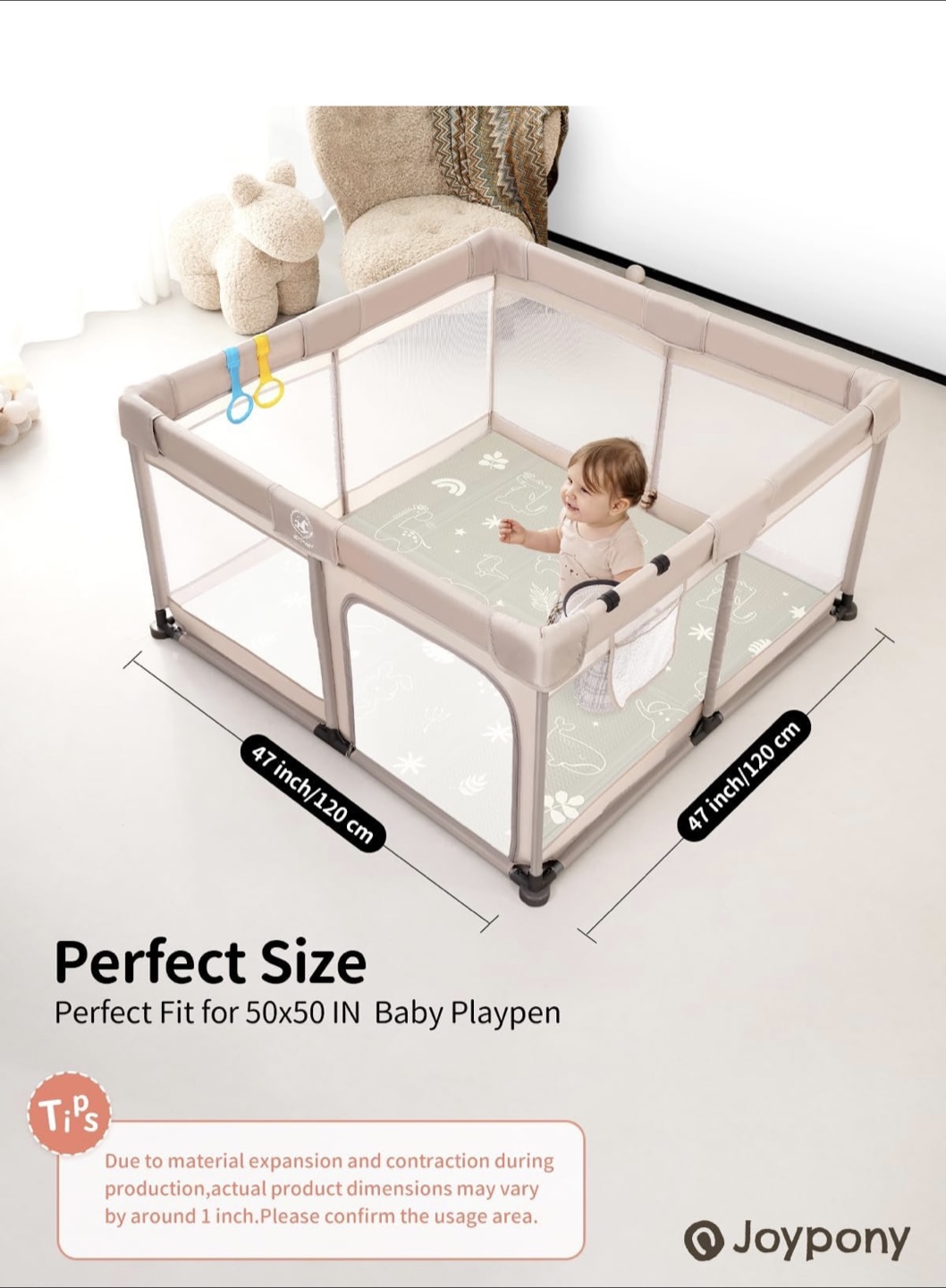 I'm selling a playpen with a matching playmat, perfect for creating a safe and fun play area for your little one. The playpen provides a secure space for your child to explore, while the playmat offers a soft and comfortable surface. Together, these items will provide a soothing environment for your baby to play in.