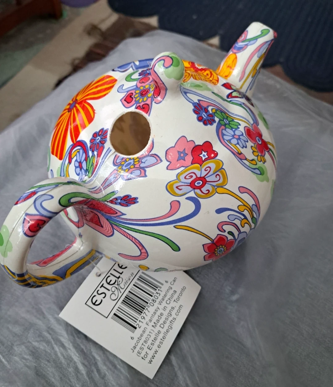 Brand New Hand-painted ceramic watering can. Features a floral design.
