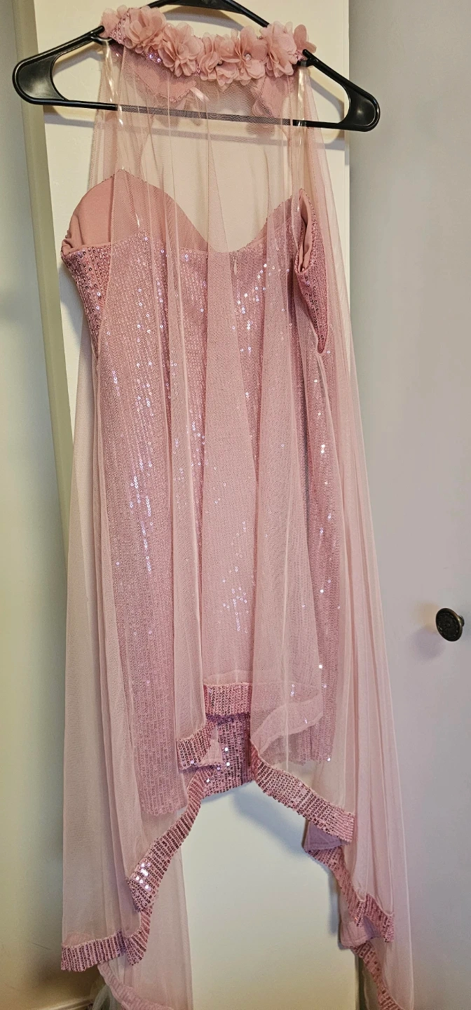 Sparkly Pink Sequin Dress with Tulle Cape