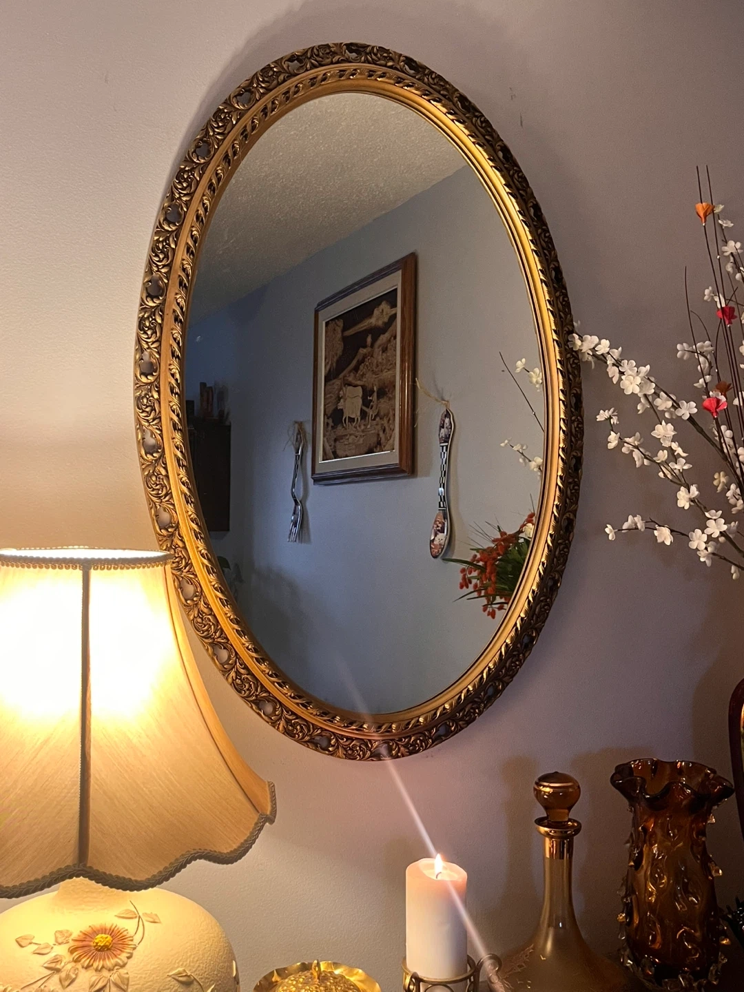 Vintage Large Syroco Ornate Gold Oval Wall Mirror