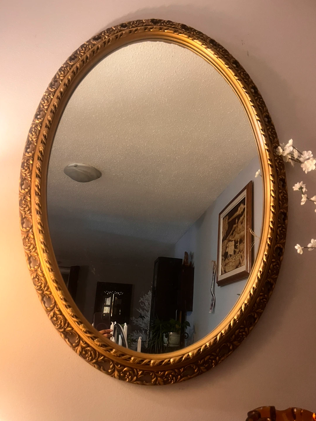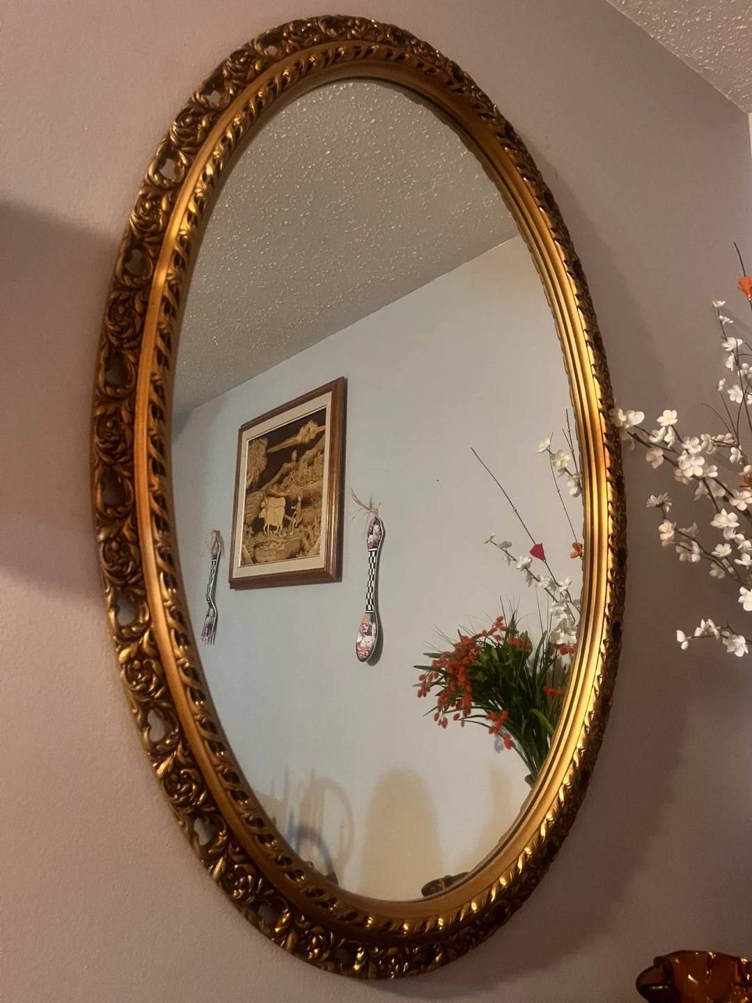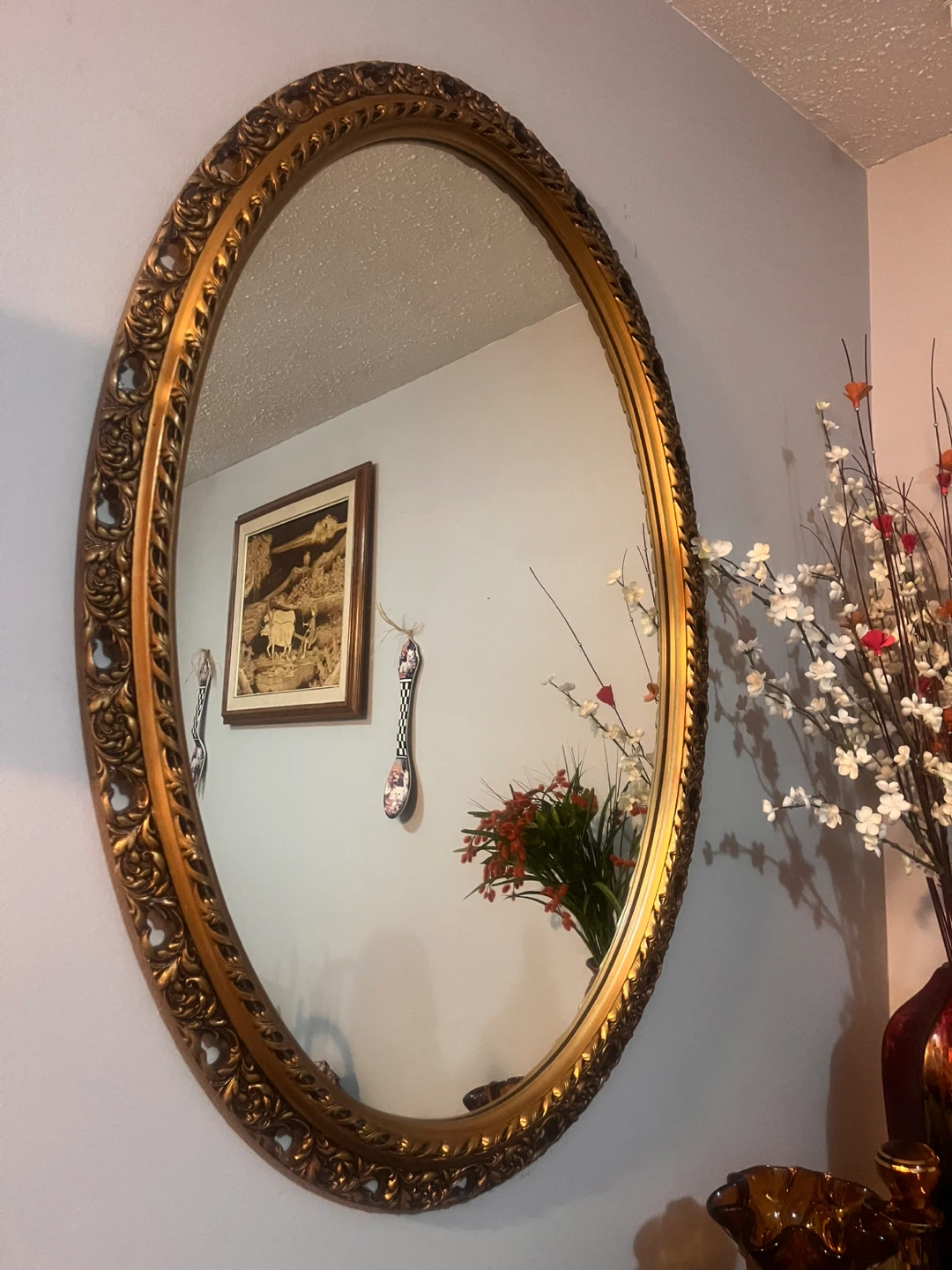 Vintage Large Syroco Ornate Gold Oval Wall Mirror
