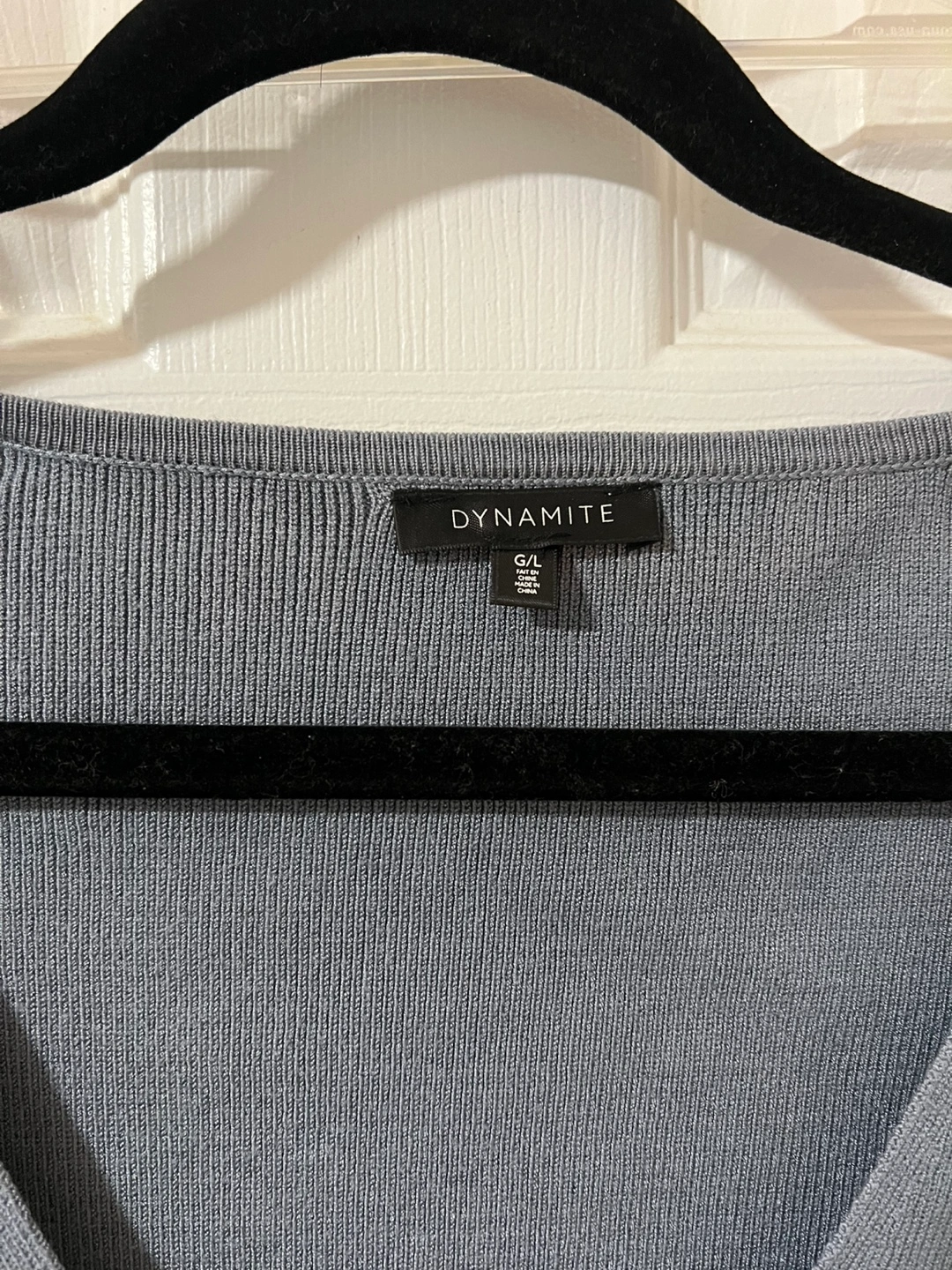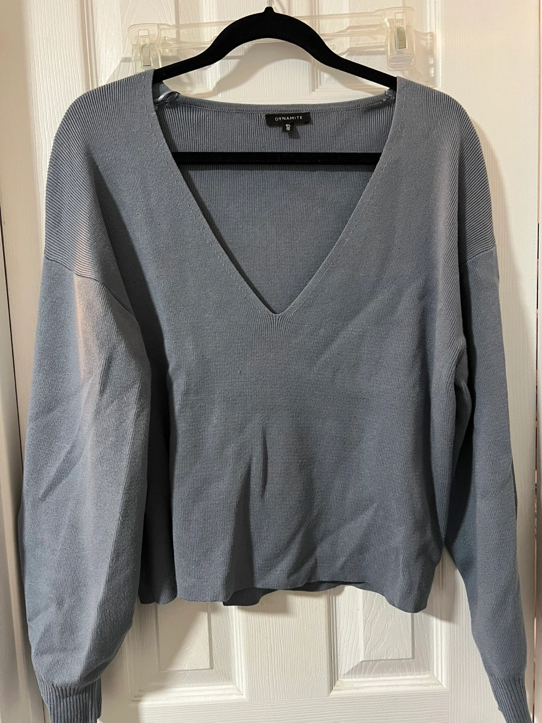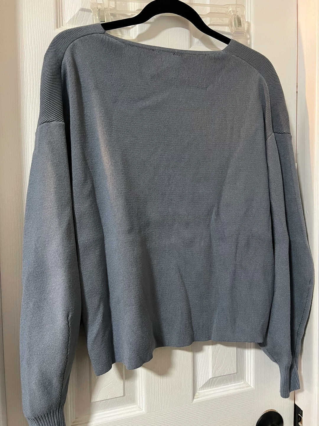 Dusty blue cropped V-neck sweater. Long sleeves. Ribbed knit. Size large. Worn a handful of times (if that). Baggy/larger fit.