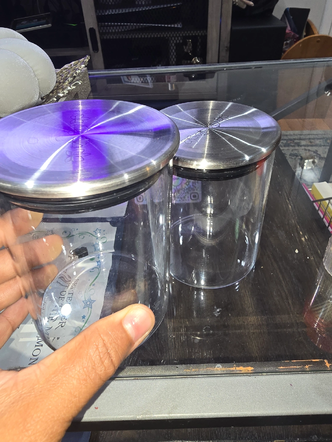 Selling a set of canisters featuring clear glass bodies and stainless steel lids. They're in great condition and ready to store your kitchen essentials!