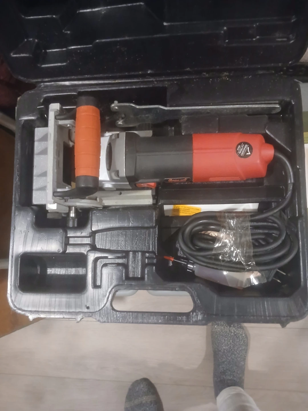This is a wood jointer tool for making dowels. It comes in a black carrying case with several wooden dowel pins. It's great for woodworking projects!