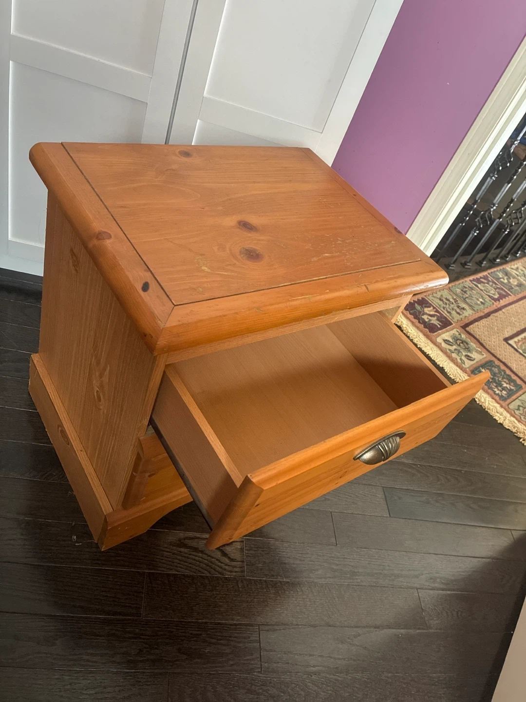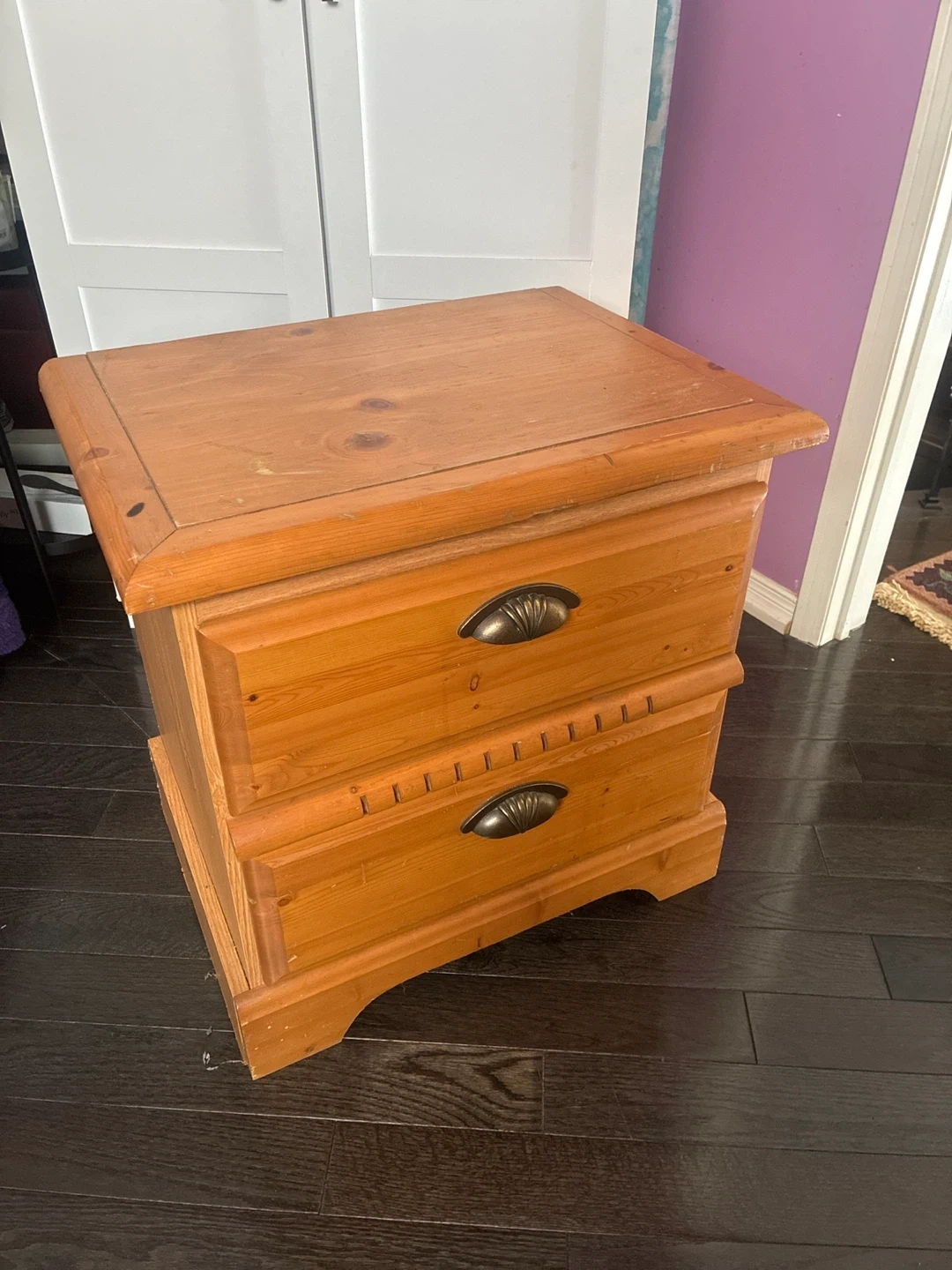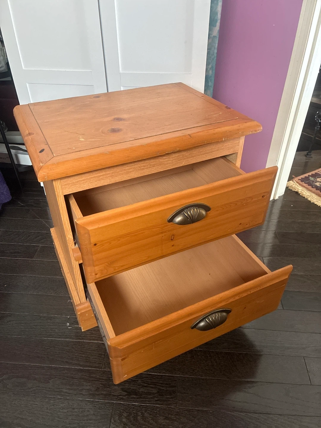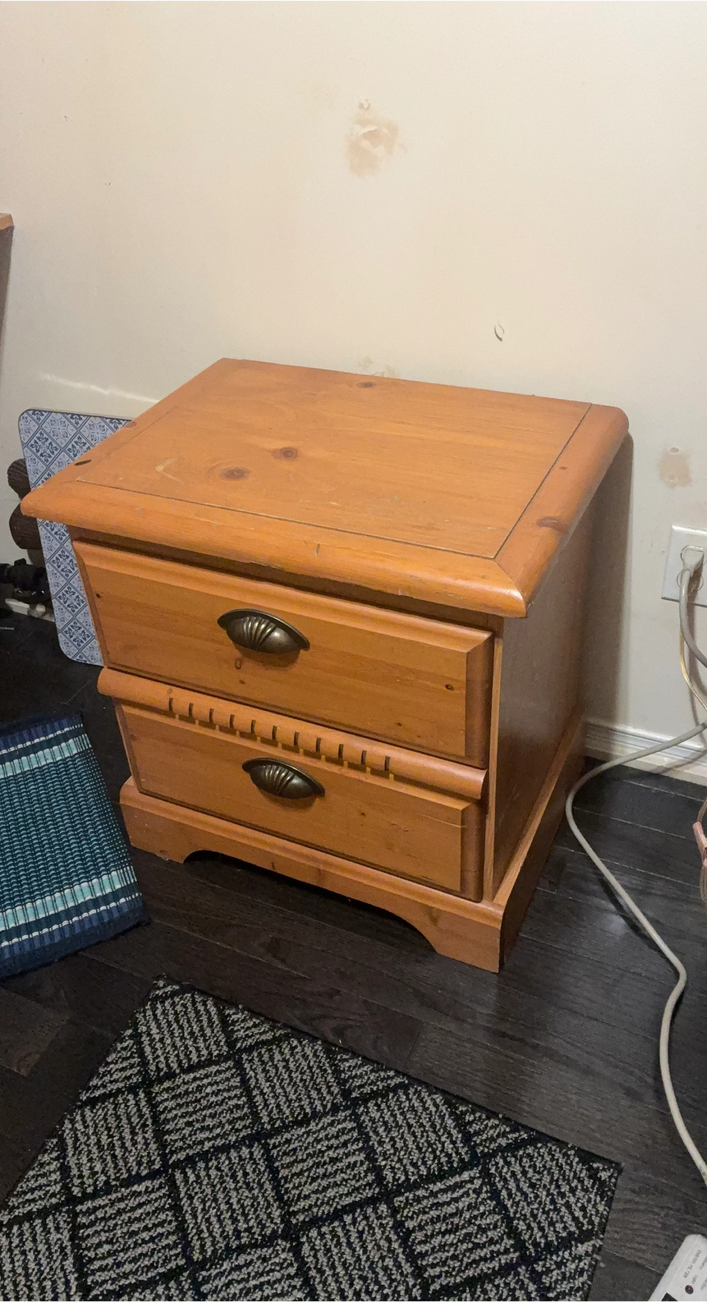 Buy & SellWooden 2-Drawer NightstandWooden 2-Drawer Nightstand$30A solid wood nightstand with two drawers. Features brass-tone drawer pulls and a light wood finish. Great for keeping essentials by your bedside!WHERE TO MEETGoldenrod CrescentView MapSELLERverifiedDyalaGoldenrod Crescent600 reviews2 chats·2 favorites·57 viewsSEND CHAT TO SELLERHi Dyala! I’m interested in your listing.Hi Dyala! I’m interested in your listing.Get the Karrot app to chatSign In to chat