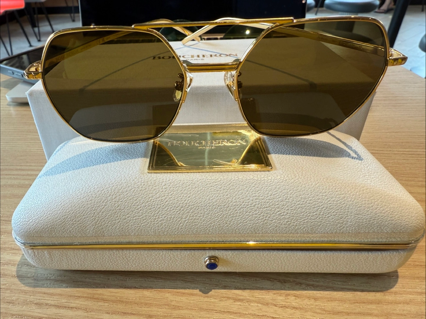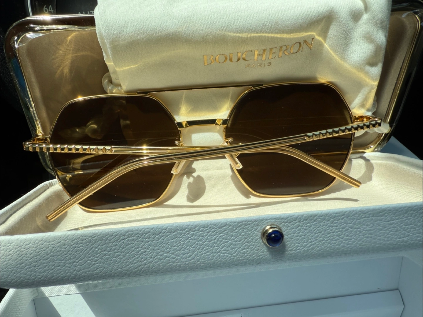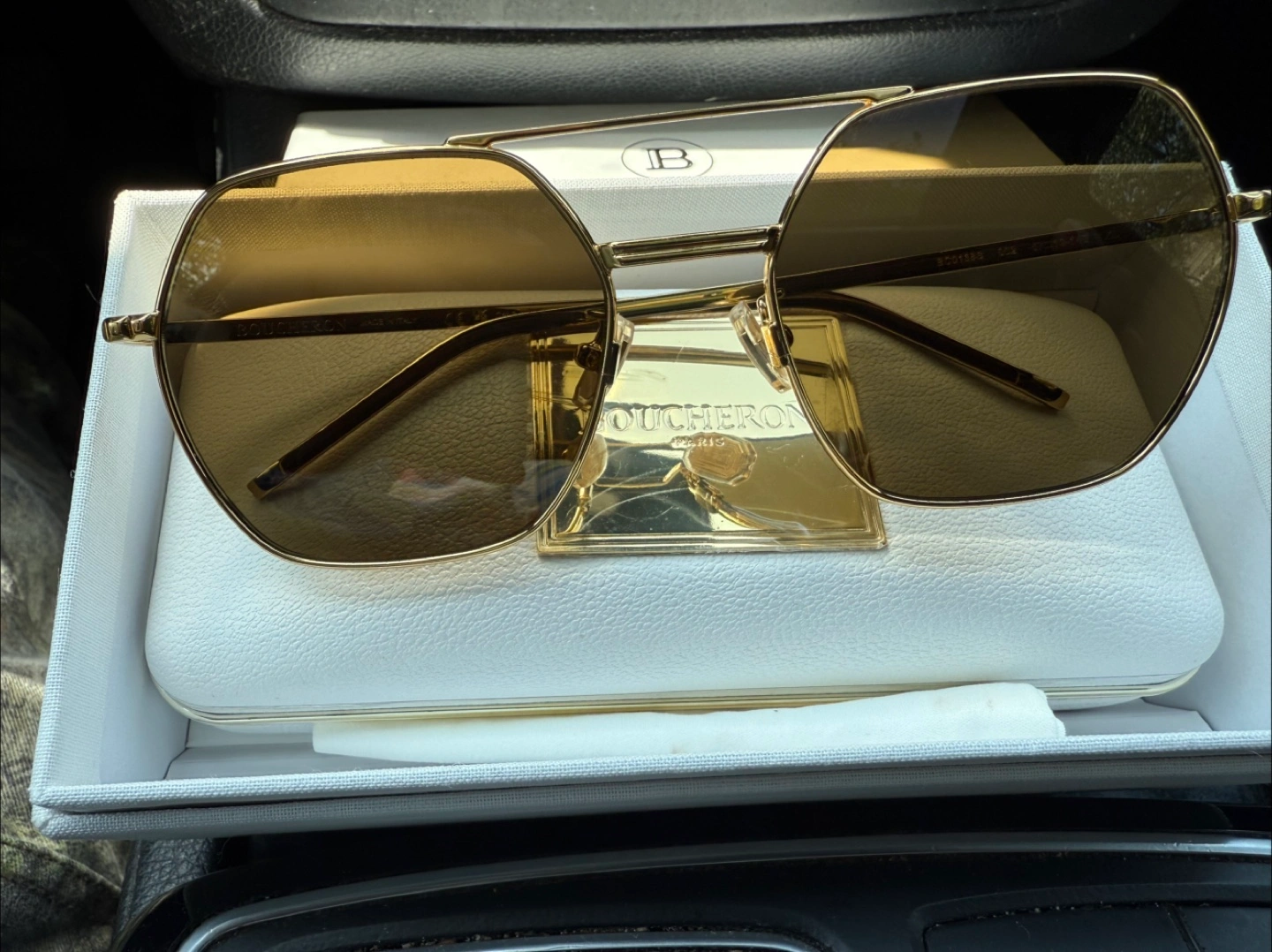 Selling a pair of Boucheron sunglasses with gold frames. They come with the original box and case. These sunglasses are in great condition and ready for a new owner!