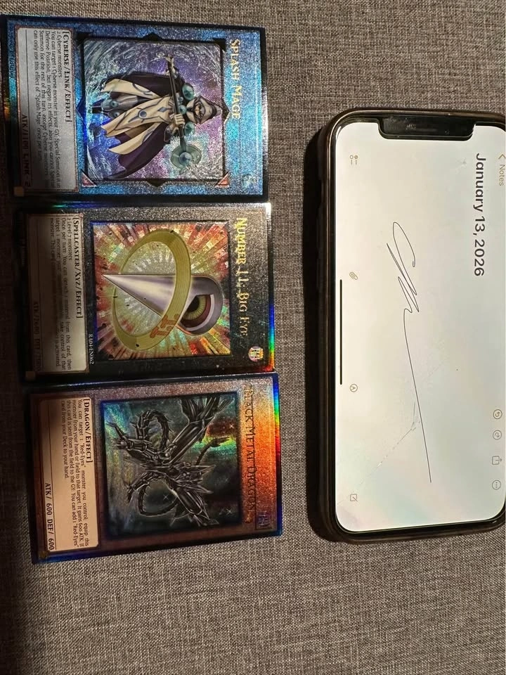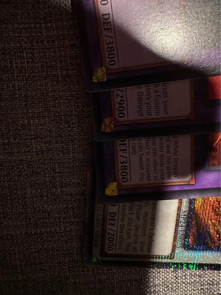 Selling some of my misprints, want to get some things for my kids. Only some of them in this listing, check my other one. Seven tools of Bandit - missing letters and pressing at end of name. Splash mage, black metal dragon, Number 11 big eye - name shifts. Torrential tribute QCR - minor name shift (bottom of box). Rare with name shifts. Creepy little punk and sweet roommaids - Anubis stamp shift. Blue eyes sdwd and Red Dragon Archfiend QCR with partial Anubis stamps.
