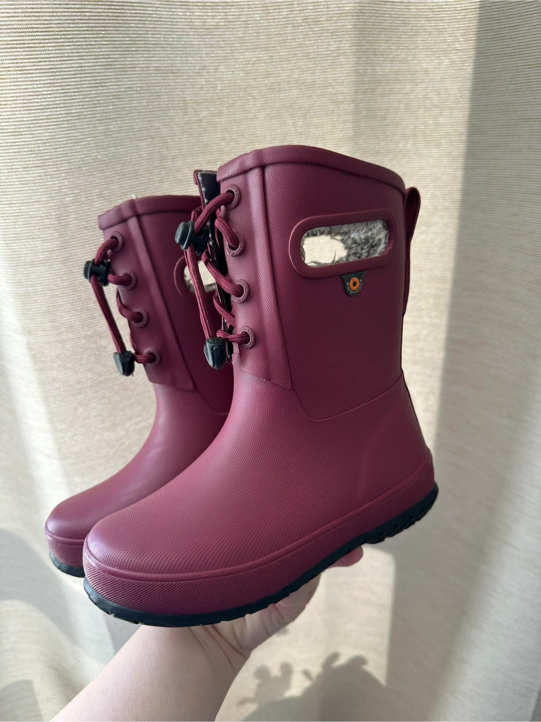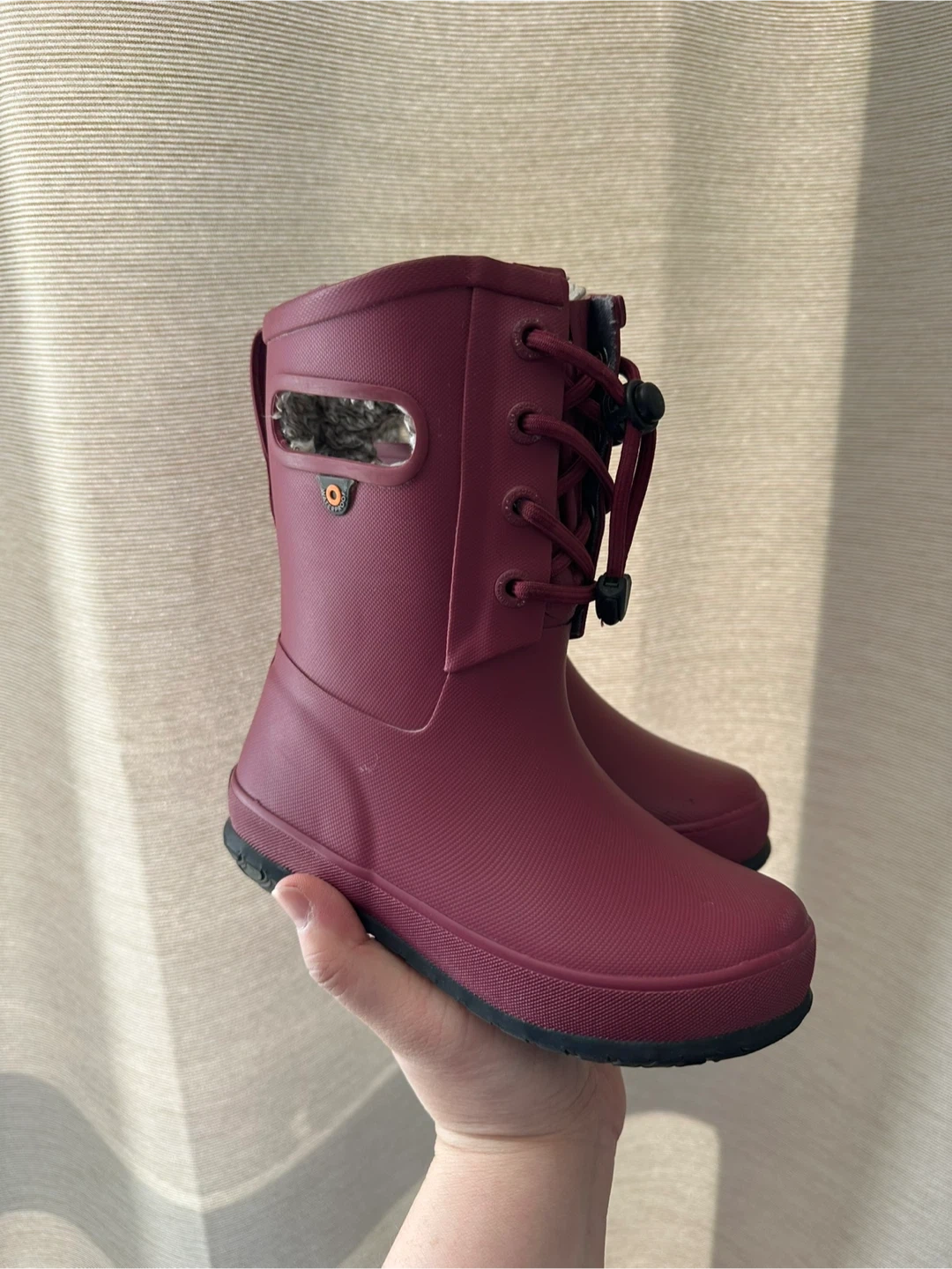 Keep your little one warm and dry with these Bogs kids' winter boots! They're waterproof and perfect for snowy days. These burgundy boots are in amazing condition!