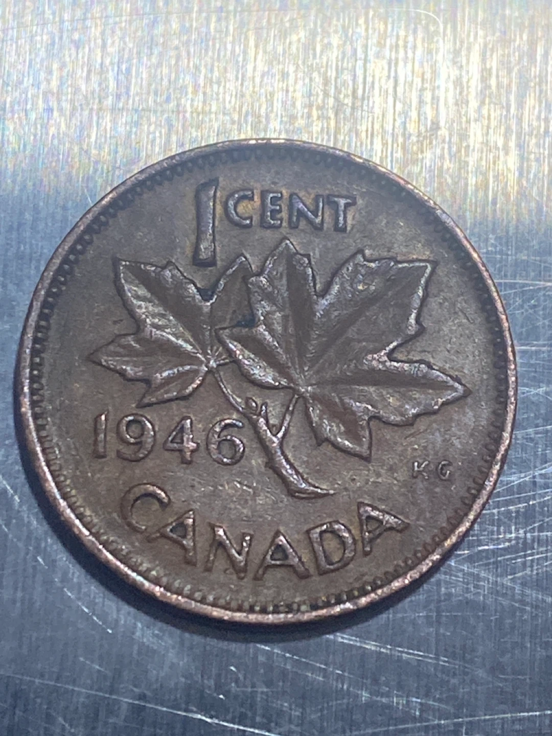 Buy & Sell1946 Canadian Penny1946 Canadian Penny$5This is a 1946 Canadian one cent coin. The obverse features King George VI. The reverse shows the iconic maple leaf design.WHERE TO MEETCheck LocationView MapSELLERverifieddiamondCorso Italia68961 reviews0 chats·1 favorites·6 viewsSEND CHAT TO SELLERHi diamond! I’m interested in your listing.Hi diamond! I’m interested in your listing.Get the Karrot app to chatSign In to chat