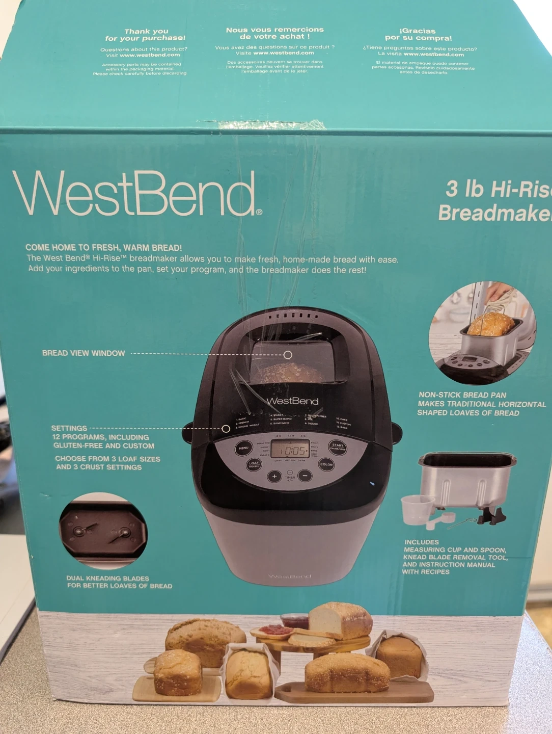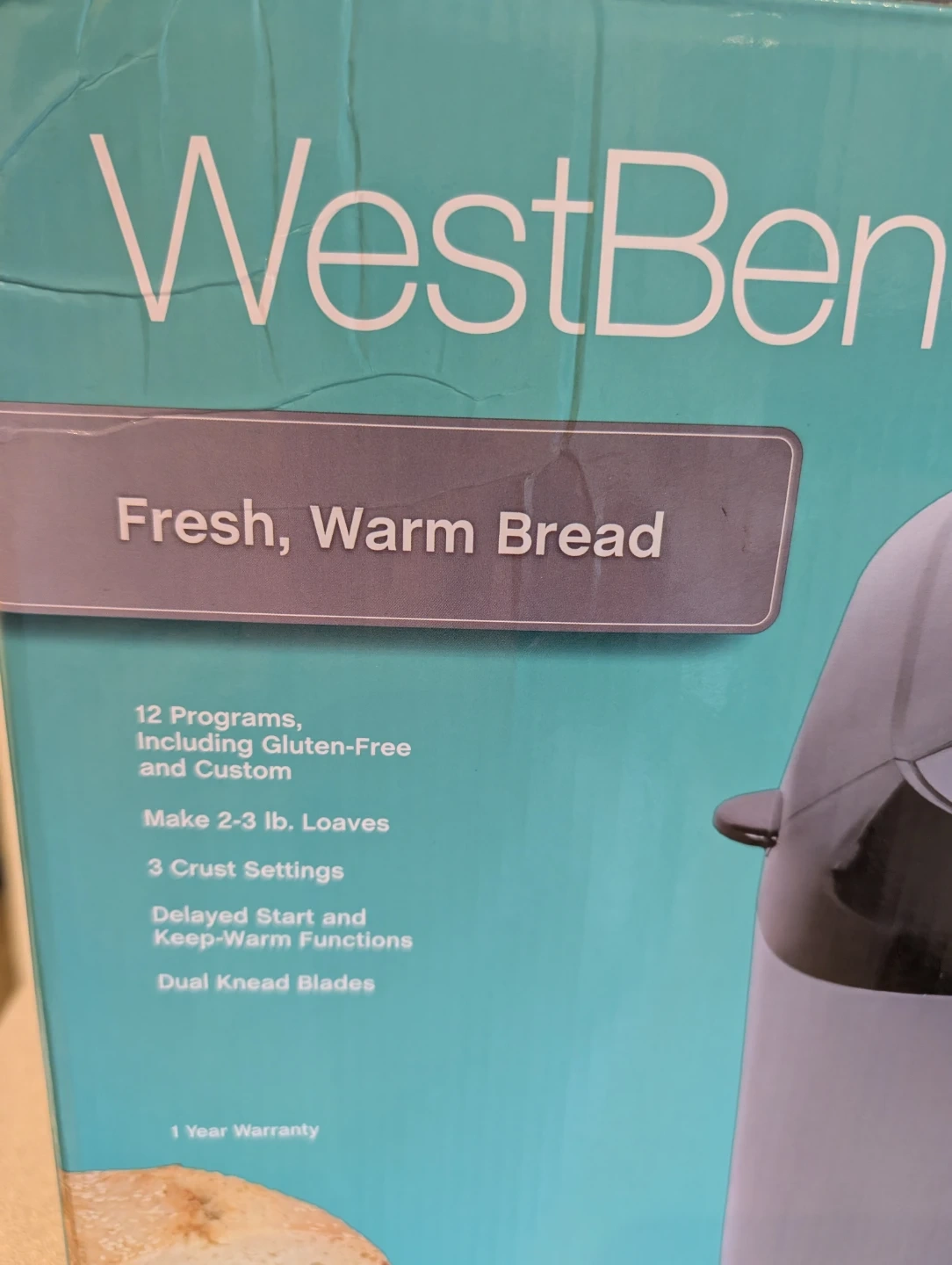 This West Bend breadmaker allows you to make fresh, home-made bread with ease. It has 12 programs, including Gluten-Free and Custom. Makes 2-3 lb. loaves with 3 crust settings.