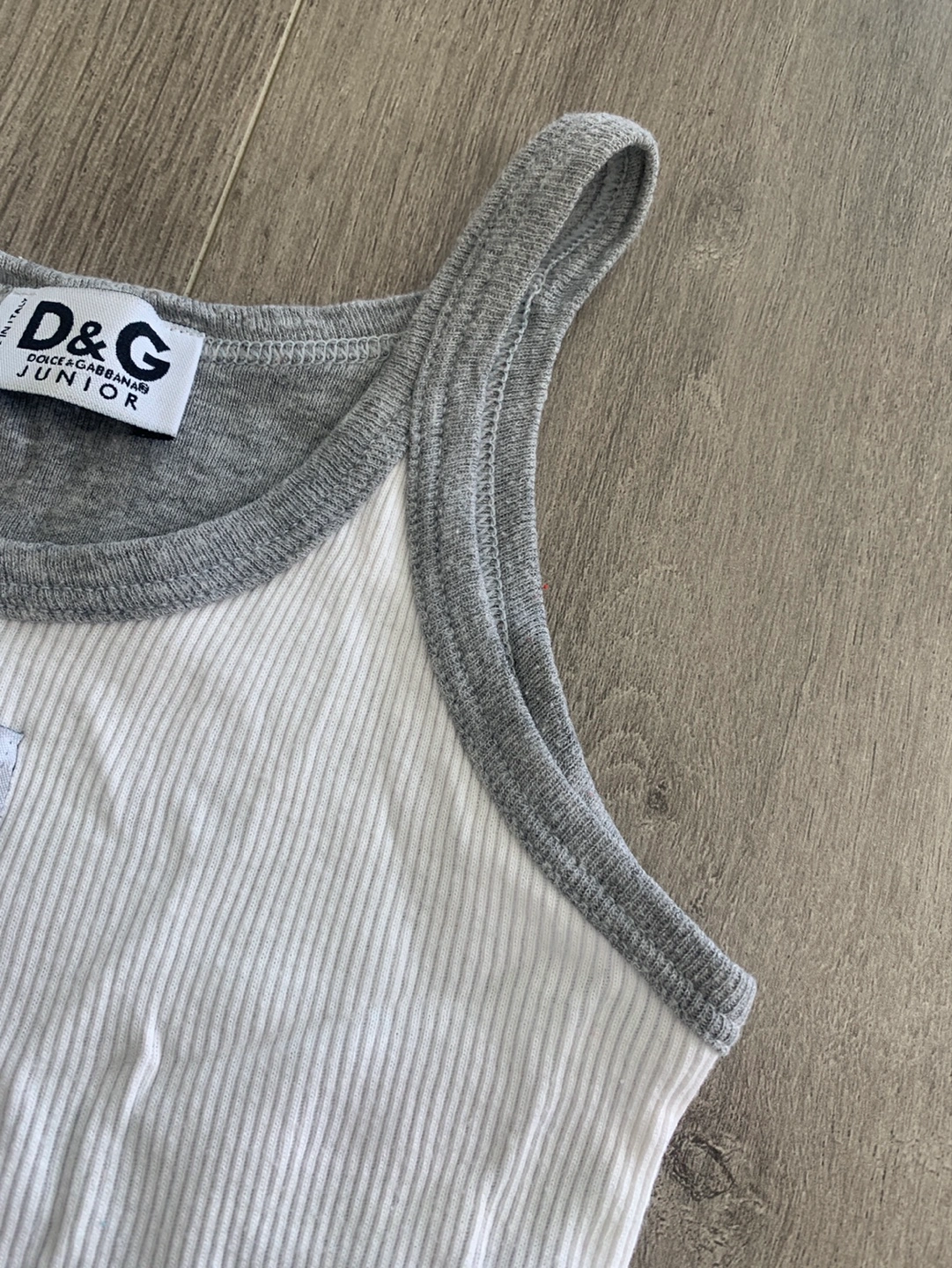 Adorable Dolce & Gabbana Junior tank top. Grey and white ribbed cotton. Made in Italy. Two-toned design. Great for summer. size 4 but not sure about that so please see measurements