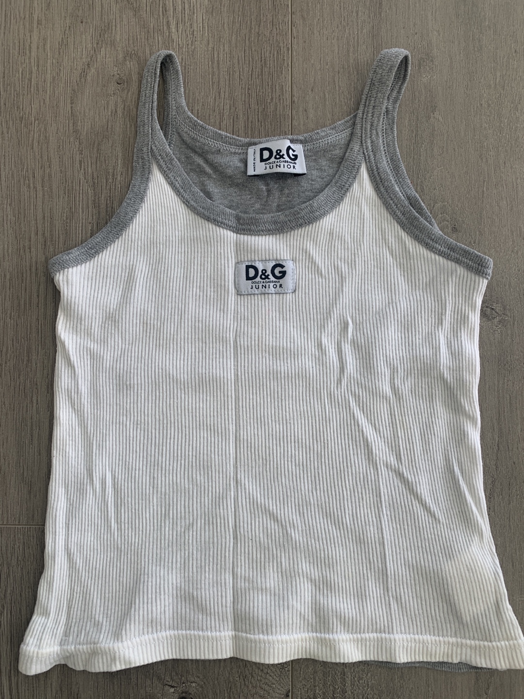 Adorable Dolce & Gabbana Junior tank top. Grey and white ribbed cotton. Made in Italy. Two-toned design. Great for summer. size 4 but not sure about that so please see measurements