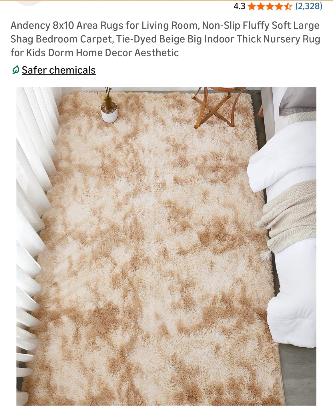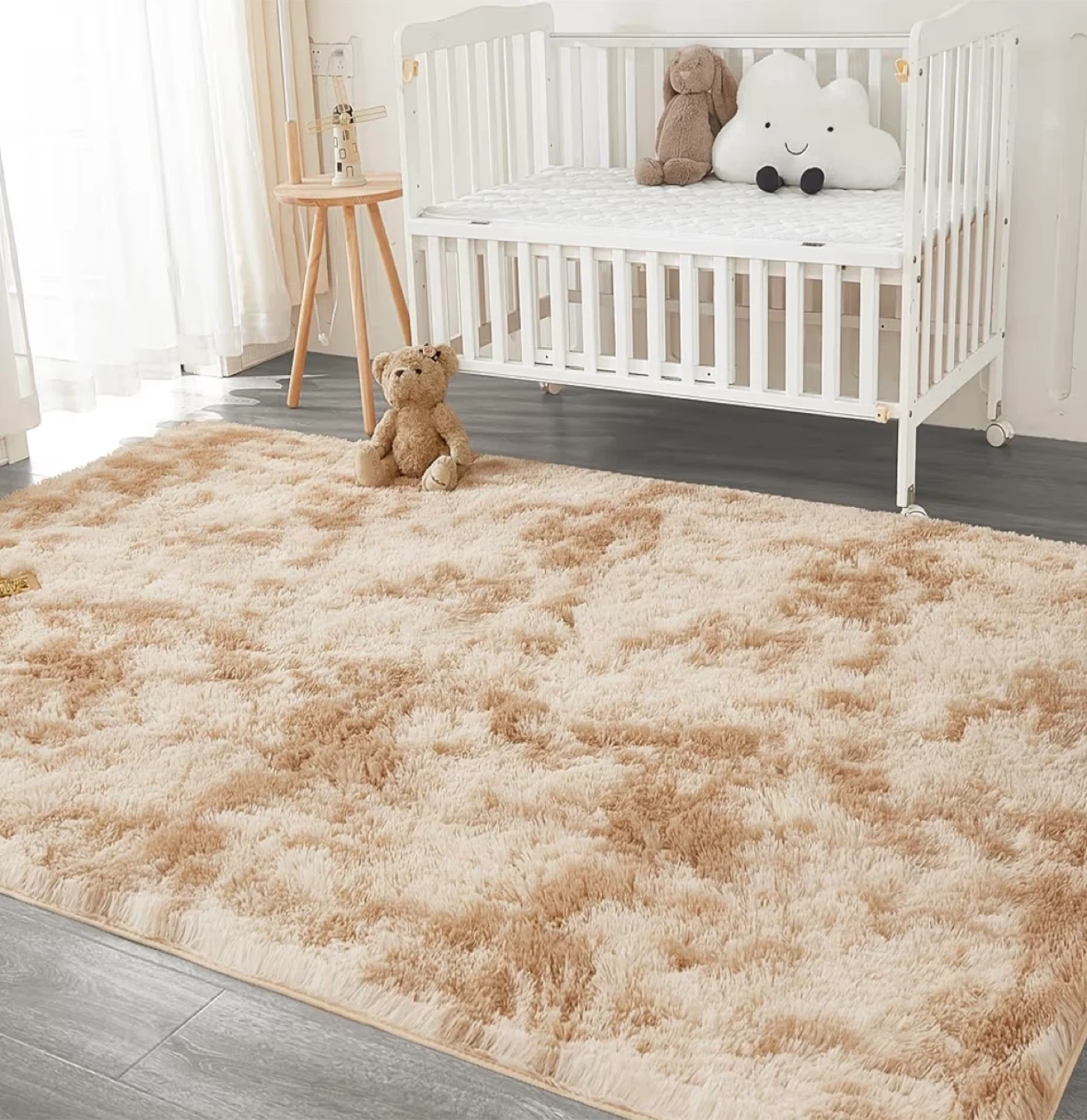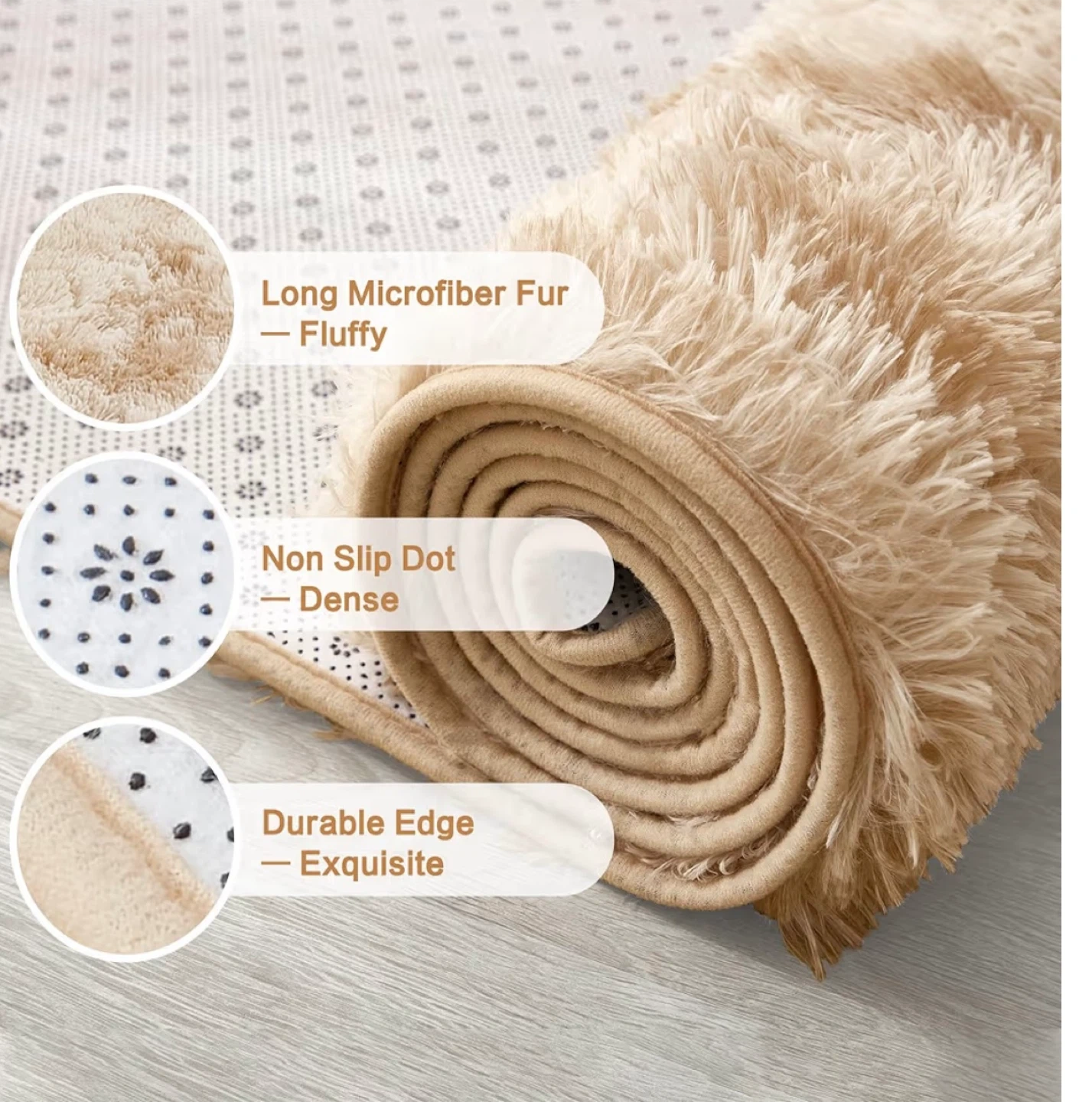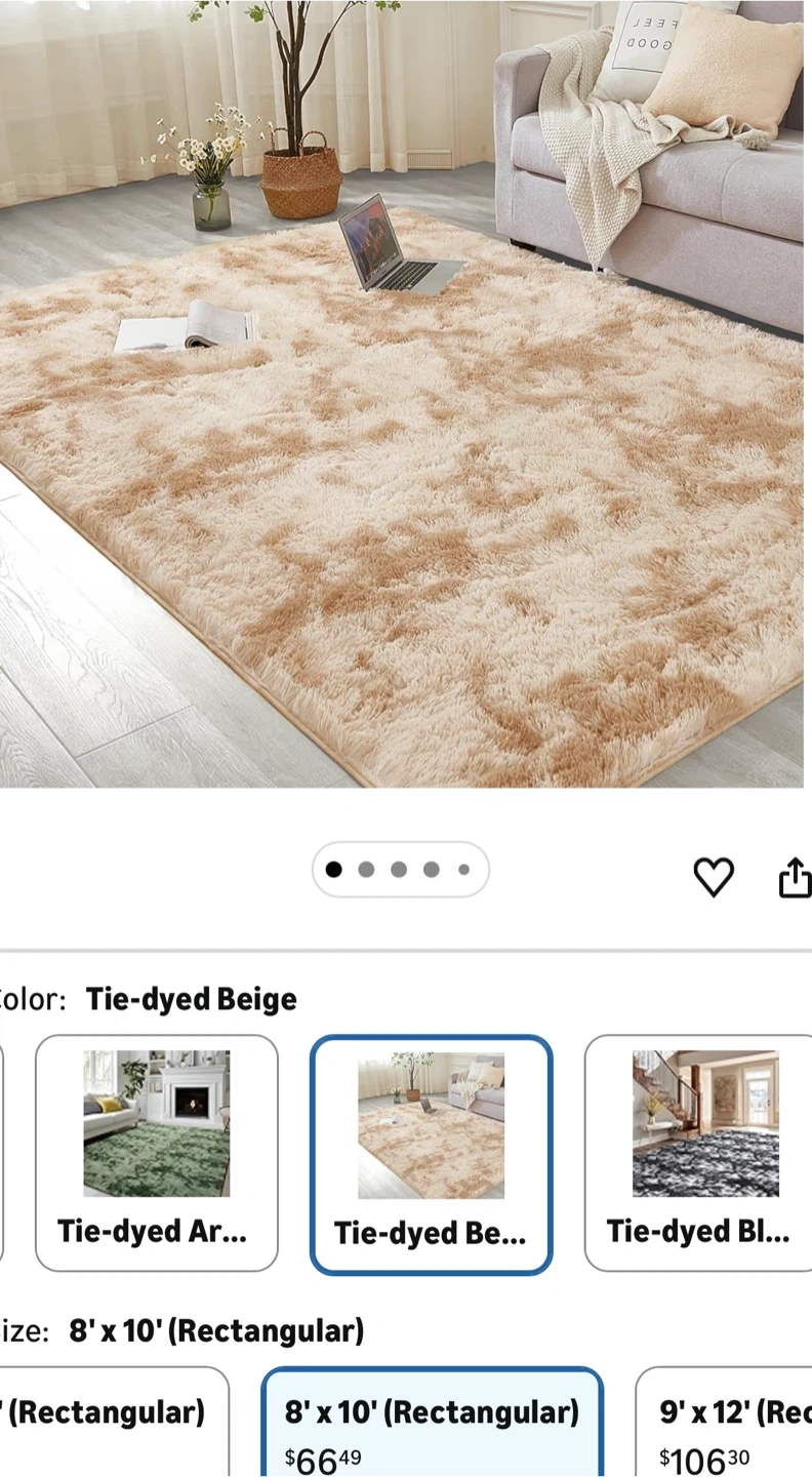 Selling an Andency area rug perfect for adding a cozy touch to any room! This rug is 8' x 10' and features a tie-dyed beige color. It's a non-slip, fluffy, soft shag bedroom carpet that's great for living rooms, kids' dorms, or as home decor. The rug has a thickness of about 1.4 inches, making it extra plush and comfortable underfoot