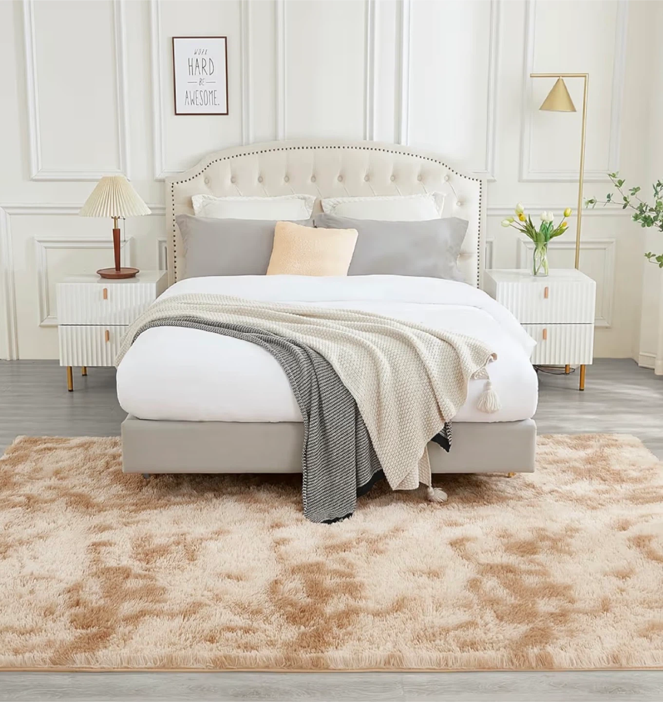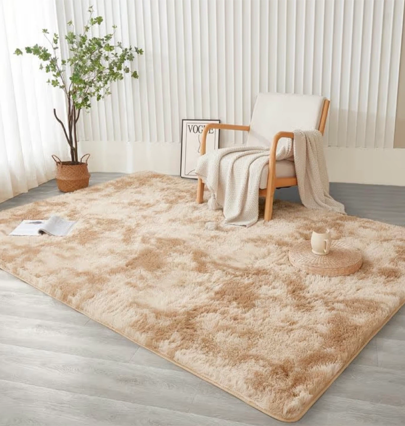 Selling an Andency area rug perfect for adding a cozy touch to any room! This rug is 8' x 10' and features a tie-dyed beige color. It's a non-slip, fluffy, soft shag bedroom carpet that's great for living rooms, kids' dorms, or as home decor. The rug has a thickness of about 1.4 inches, making it extra plush and comfortable underfoot