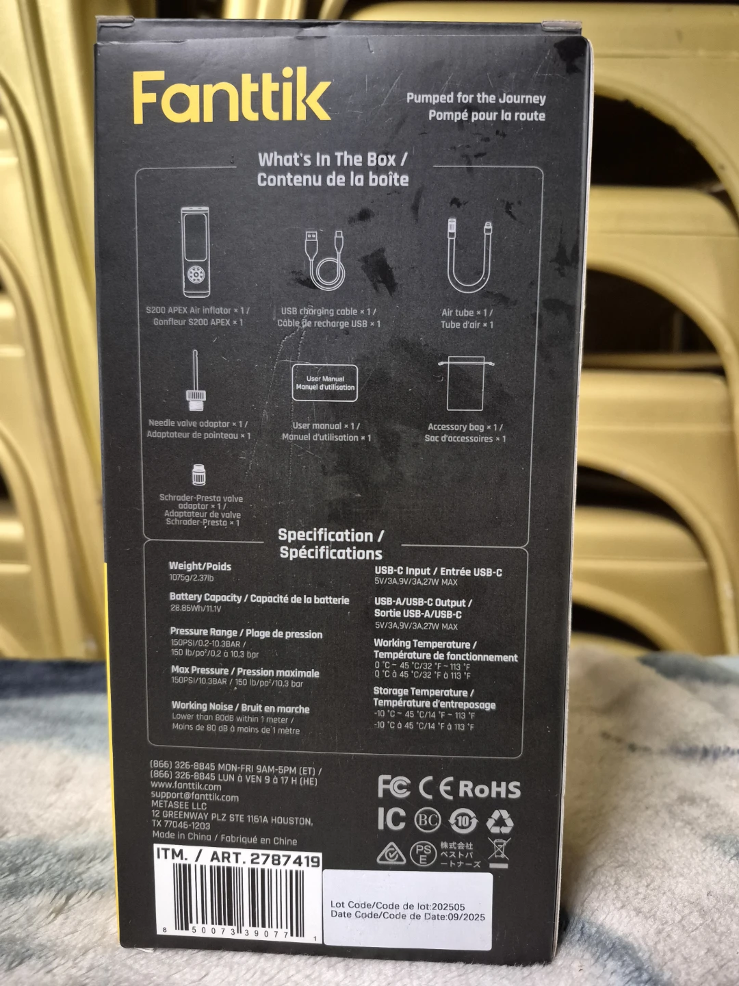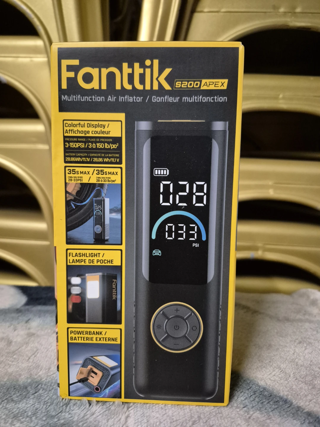 Selling a brand new Fanttik S200 Apex Multifunction Air Inflator! It comes in its original box, complete with all components including a USB charging cable, air tube, needle valve adaptor, user manual, and accessory bag. Key features: - Colorful display - Flashlight - Powerbank Specifications: - Pressure range: 3-150PSI / 3-150 lb/in² - Battery capacity: 78.96Wh/1.1V - USB-C Input: 5V/3A/3A/27W Max - USB-A Output: 5V/3A/2A/27W Date Code: 2025 September
