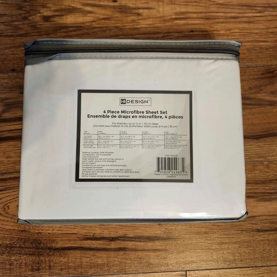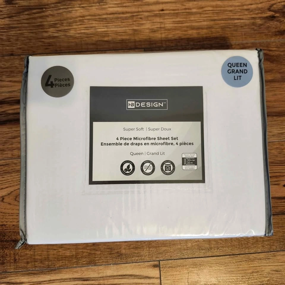 New 4 Piece White Sheet Sets in a sealed package 📦. Queen Size includes: 1 Flat Sheet, 1 Fitted Sheet, 2 Pillowcases. Super soft material! 100% Premium Microfiber Polyester. Hypoallergenic, Wrinkle-free, Machine Washable. Price: $35. Pickup in Ferris (North Bay). Non-smoking, cat-loving home. All sales are final.