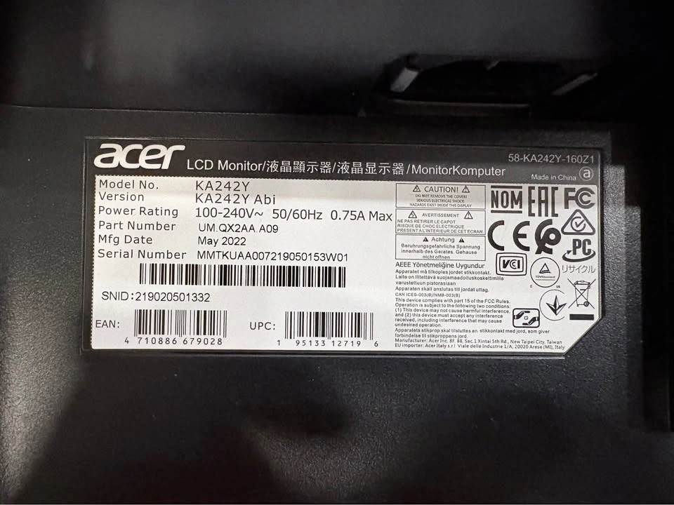 Selling an ACER KA242Y 24” Full HD monitor in excellent working condition. Used for one year.