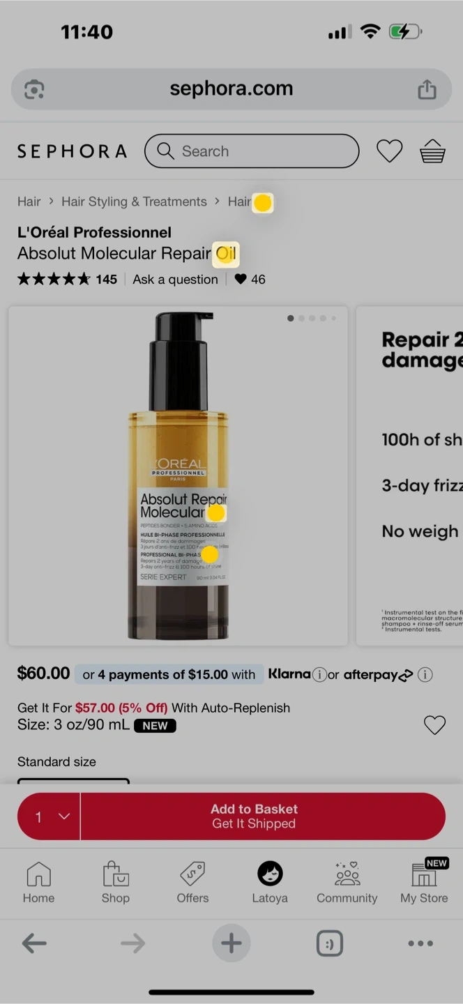 L'Oréal Professionnel Absolut Repair Molecular Oil in a 90ml size. This hair oil is designed for damaged hair. It helps to repair hair and add shine.