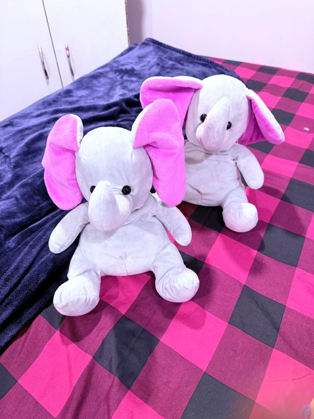 Plush Elephants with Pink Ears (Set of 2)