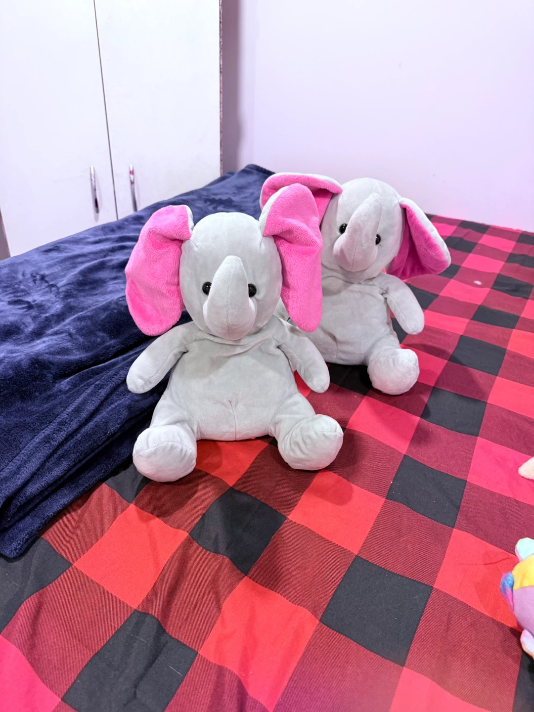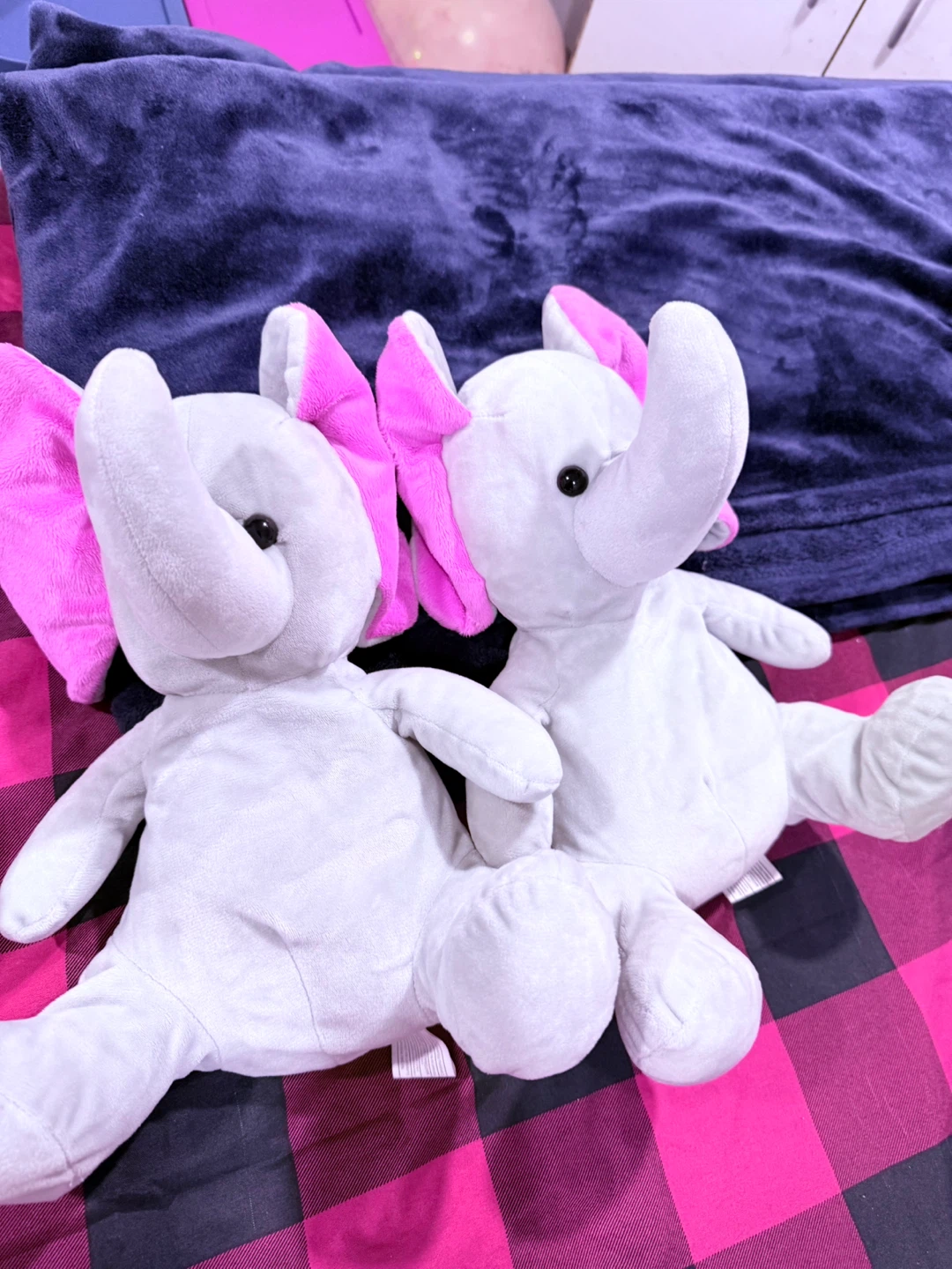 Plush Elephants with Pink Ears (Set of 2)