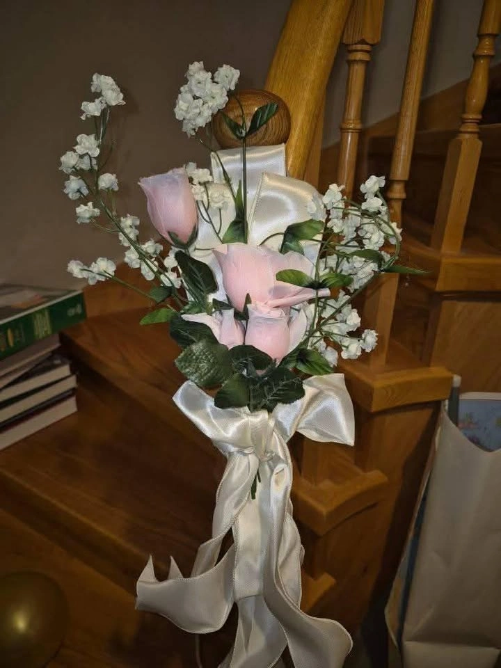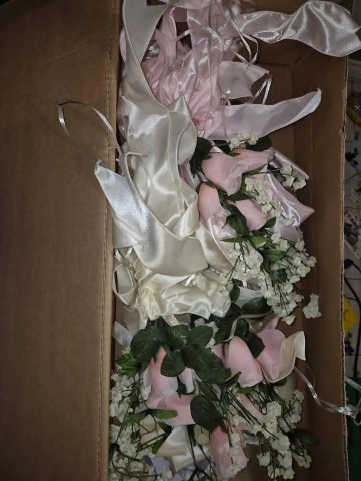 Used once homemade pew bows. Has a sturdy wire that can bend adding flexibility to hanging or attaching to different size pew benches, pews or chairs. Thickson and Taunton. Pet and smoke free home. No holds. Fastest pickup. Some bows will need freshening up/retied - pink ribbon and 2 white ribbon