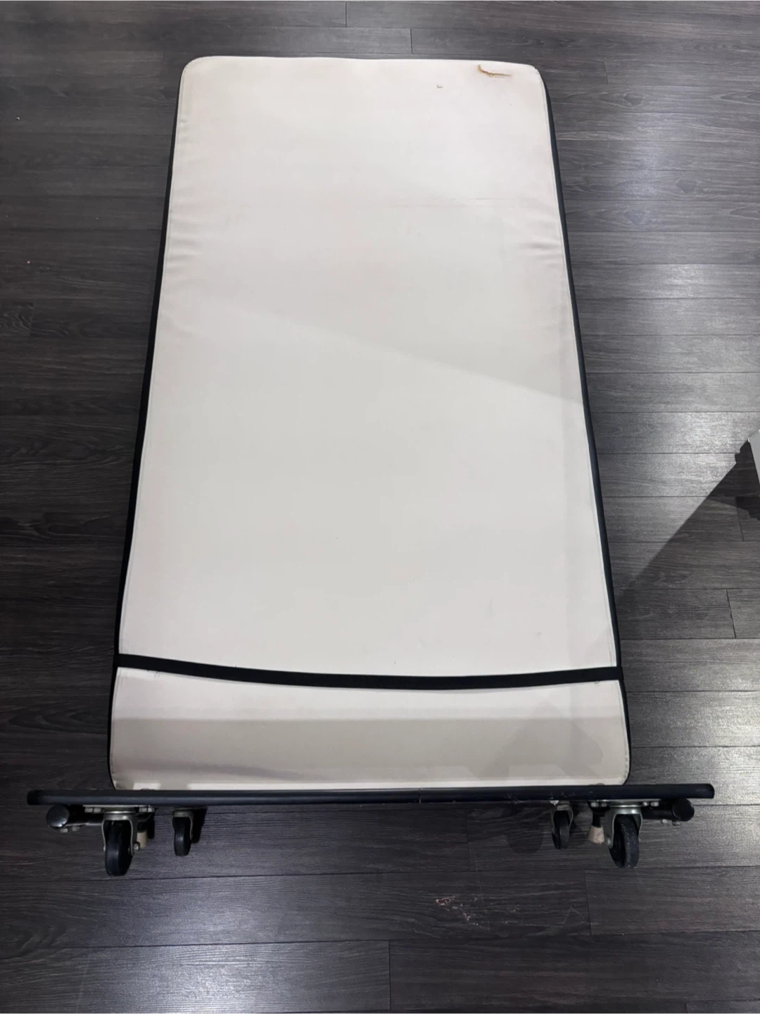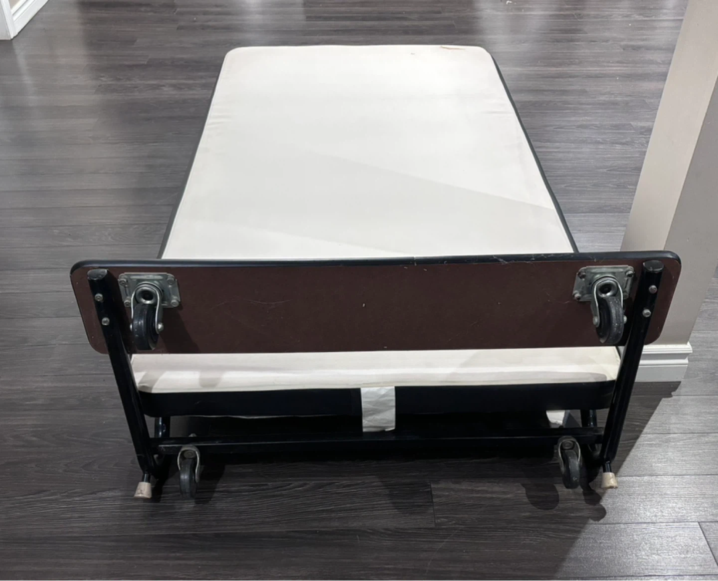 Buy & SellSingle Bed frame with WheelsSingle Bed frame with Wheels$19This is a bed frame with wheels for easy transport. It has a white mattress with black trim. The frame is a black metal with a wooden headboard.ConditionGoodWHERE TO MEETAjaxView MapSELLERverifiedTobiWestney & Kingston600 reviews2 chats·1 favorites·81 viewsSEND CHAT TO SELLERHi Tobi! I’m interested in your listing.Hi Tobi! I’m interested in your listing.Get the Karrot app to chatSign In to chat