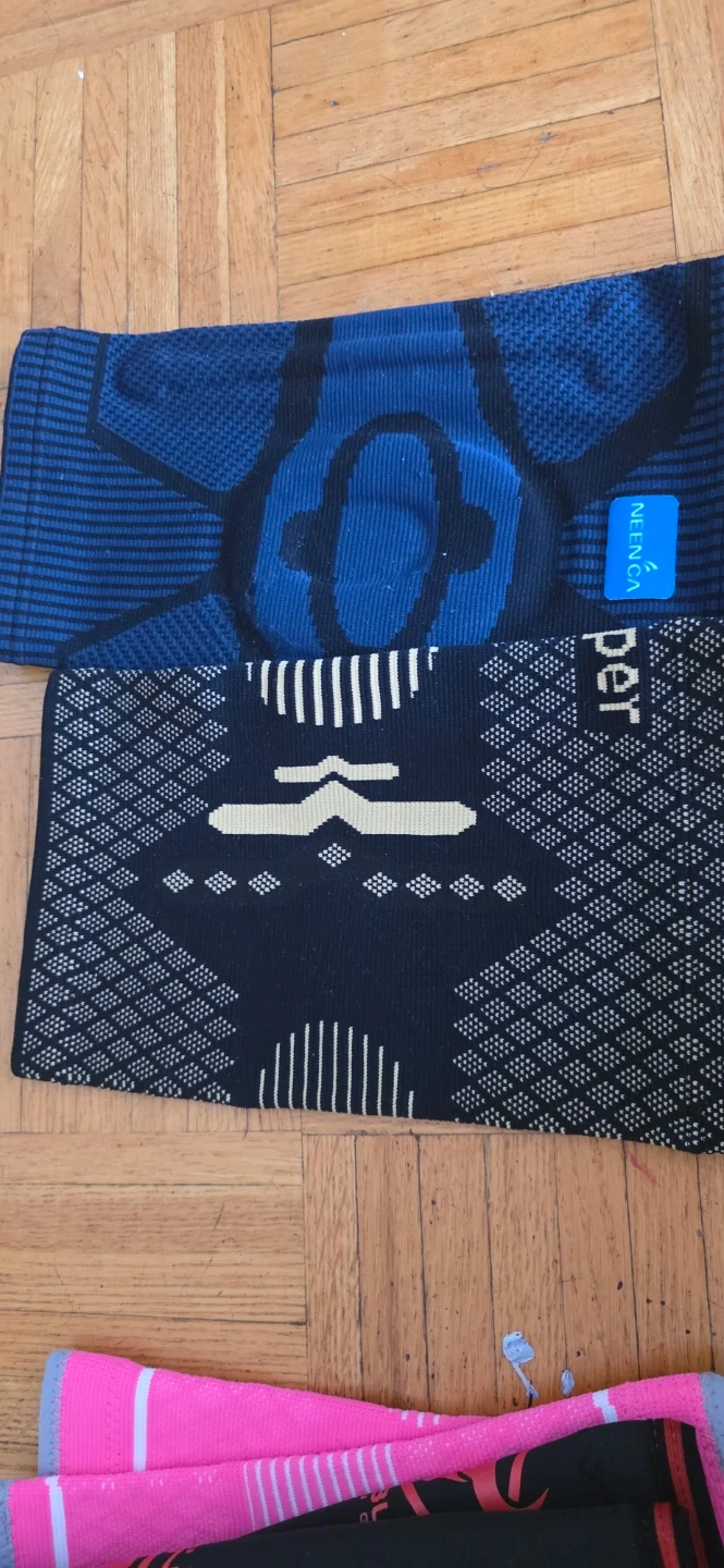 Neenca blue compression knee sleeve. It's made from a breathable fabric blend. Provides support for active individuals.each 12$