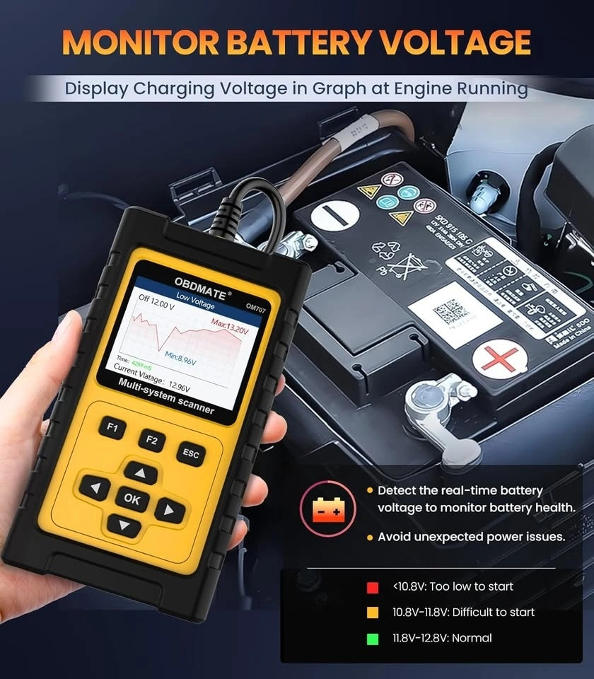 Compared to computer scanner, this 2.8" professional diagnostic scanner with resets displays clear readings of various sensors while keeping a handheld using experience. With its plug-and-play design, the OM707 requires no complex setup, quickly gets diagnosis started without any batteries or updates. 1-Min quickly scanning provides accurate results of all systems, helping you assess your vehicle's condition with ease.