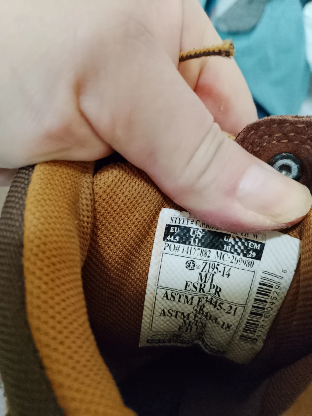These Carhartt work boots are a size 11 US Men's. They're made of durable brown leather and feature a slip-resistant sole. Perfect for construction or heavy-duty work! They were used for paving for two weeks hence the bichament stains they have been washed and have a tonnexof life left... 45 obo