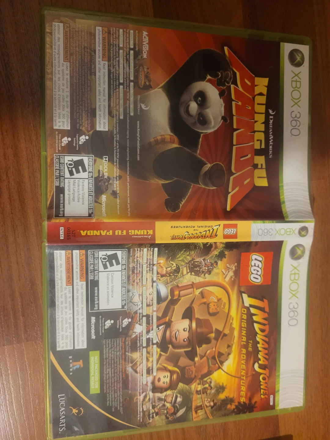 Selling two used Xbox 360 games: Lego Indiana Jones and Kung Fu Panda. All games are in good condition and ready for hours of fun.