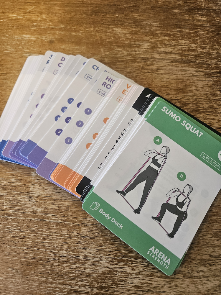 Comes with a workout guide and body cards, which are really handy as you can customize your own workout with them