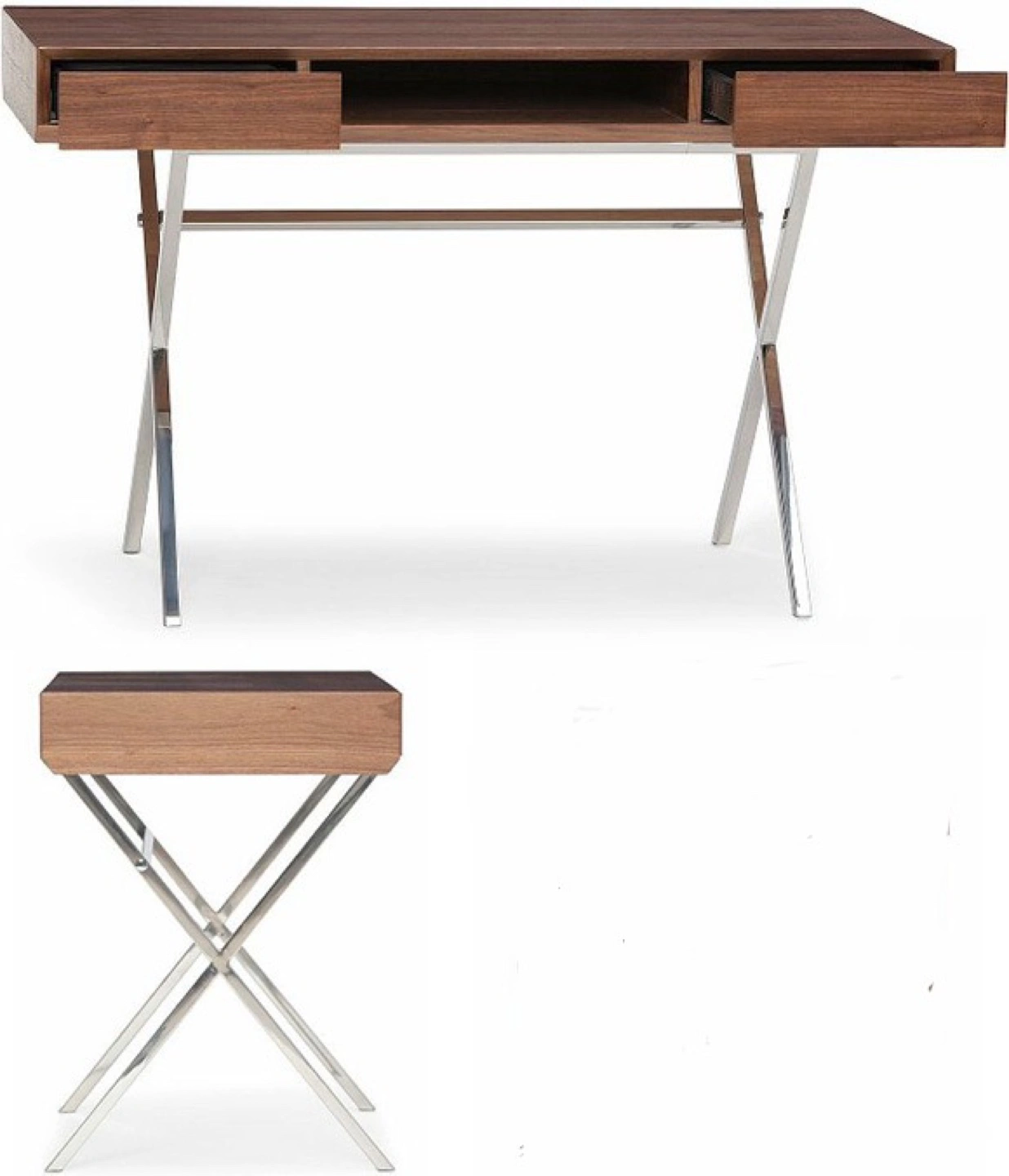 Modern Walnut Desk with Chrome Legs