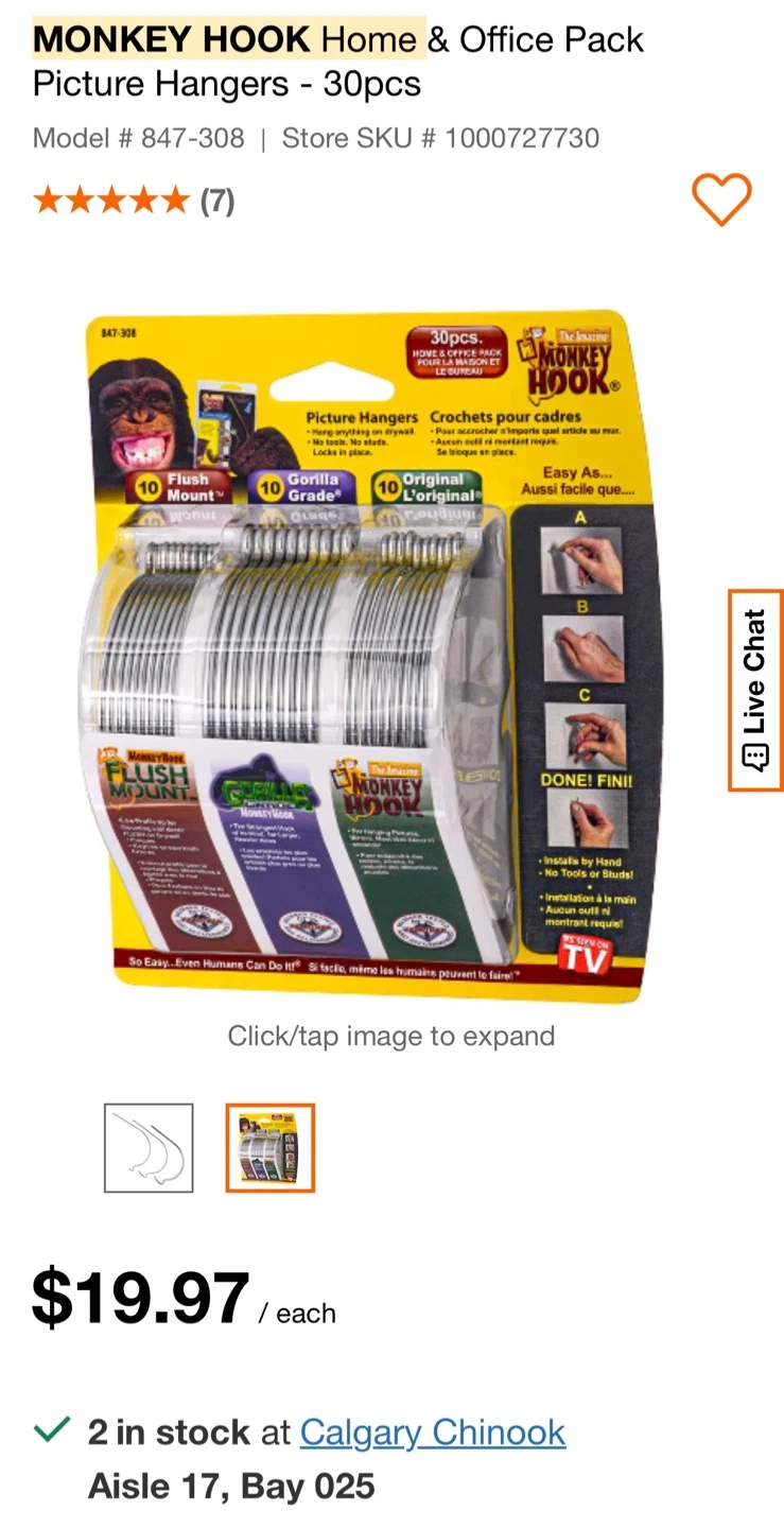 This is a 30-piece Home & Office Pack of The Amazing Monkey Hook picture hangers.