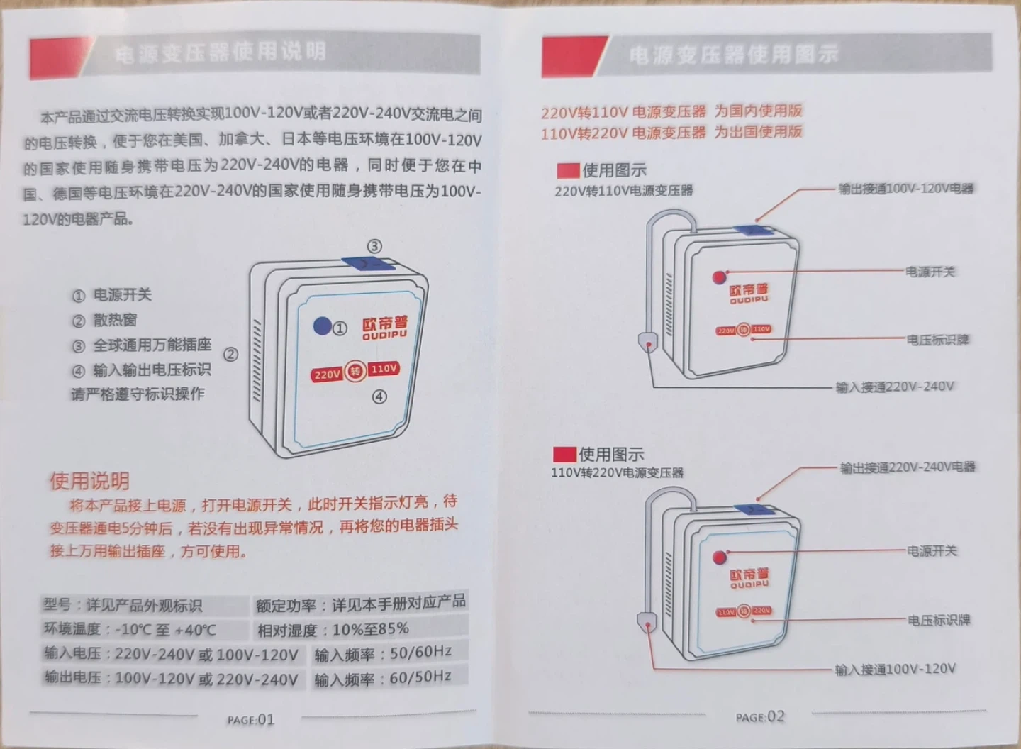 This Oudipu power transformer converts 220V to 110V. It's rated for 300W. Perfect for using 110V appliances in 220V regions.
