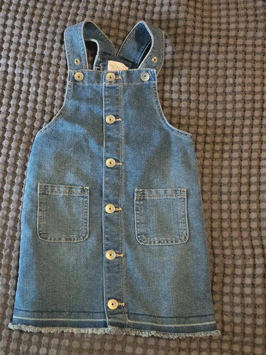 Cute denim jumper dress from The Children's Place! It features button closures and two front pockets. Perfect for your little one to wear during warmer weather. 4T