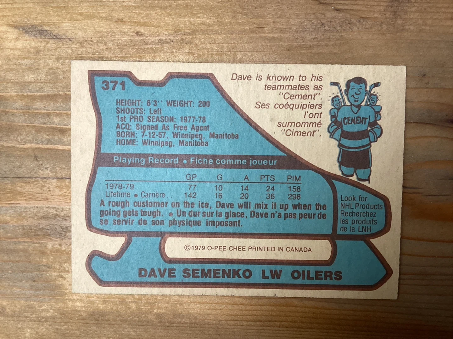 1979-80 OPC DAVE SEMENKO EDMONTON OILERS Rookie Card 371