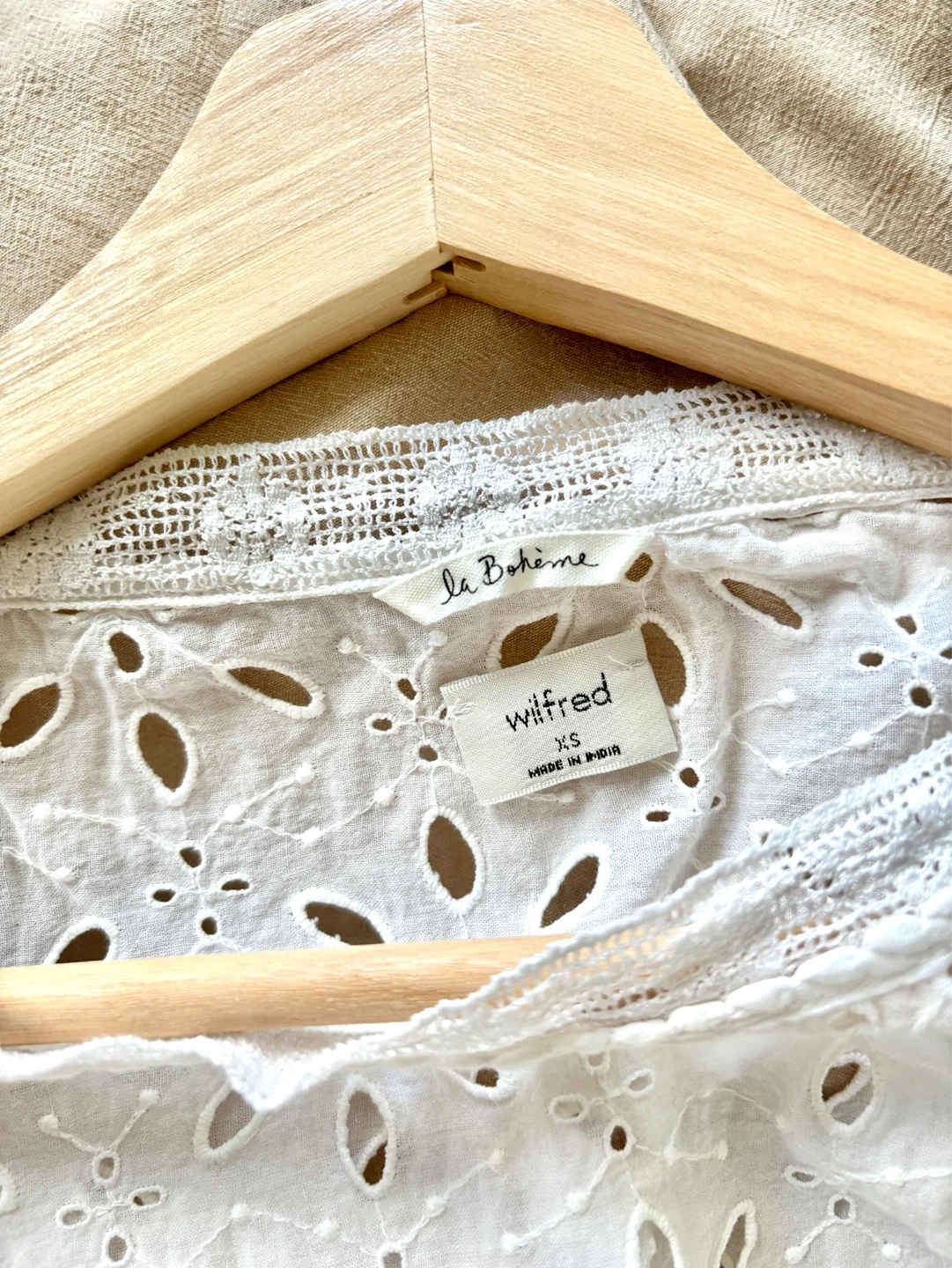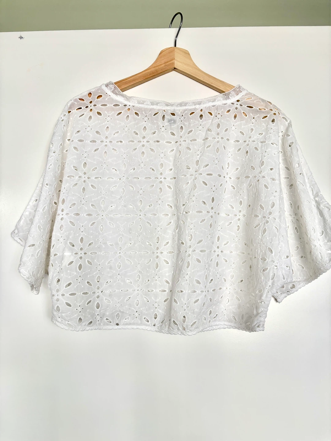 White broderie anglaise top from Wilfred. It's a size XS with short dolman sleeves