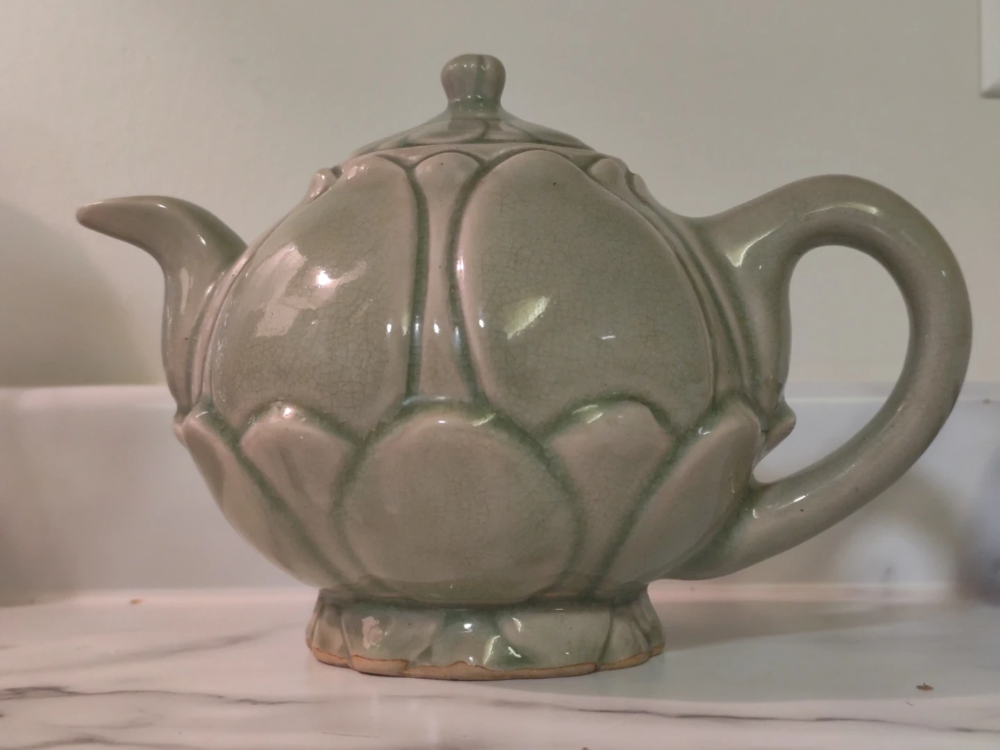 This teapot is made of ceramic with a jade green glaze. It features a beautiful lotus petal design all around the body. It's perfect for brewing and serving your favourite teas.