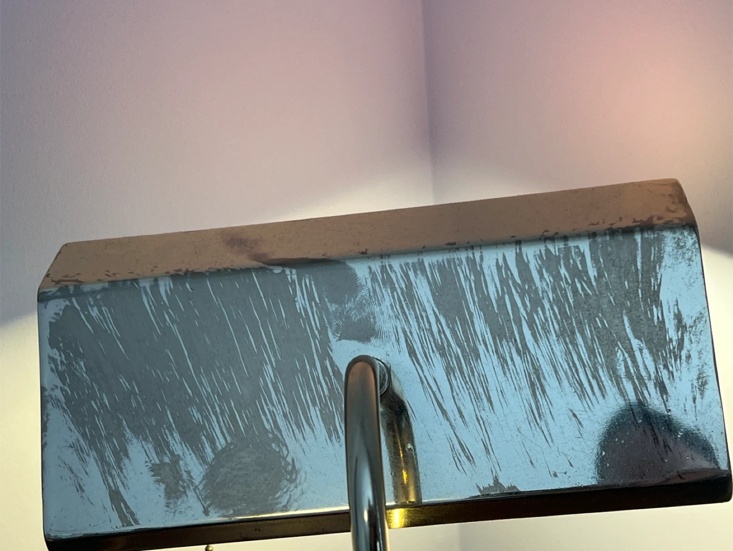 Vintage Coca-Cola desk lamp with a classic logo design. It features a brass-toned base and pole with a pull chain and tassel. This lamp's nostalgic appeal makes it a cool accent piece for a den or home office. There is some tarnish marks on the top and back mostly, with proper cleaner might be able to bring back.