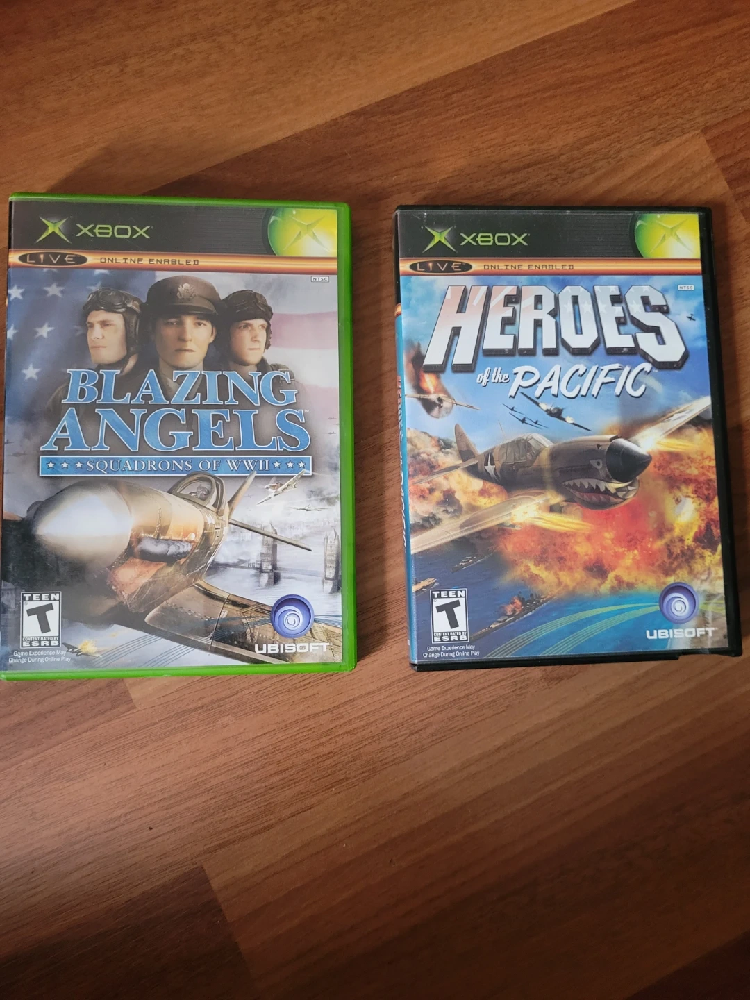 Selling two used Xbox games: Blazing Angels: Squadrons of WWII and Heroes of the Pacific, offering intense aerial combat experiences. Both games are in good working condition, ready to provide hours of historical dogfighting action. These titles offer a nostalgic trip back to the golden age of flight combat games!