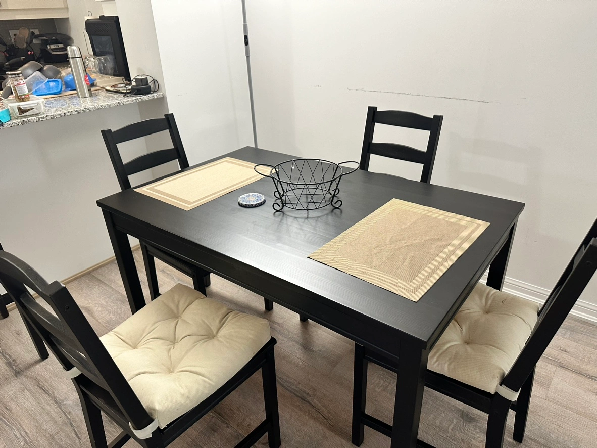 IKEA 4-seater dining table and chairs with cushion. Bought in Oct 2023, used like new.