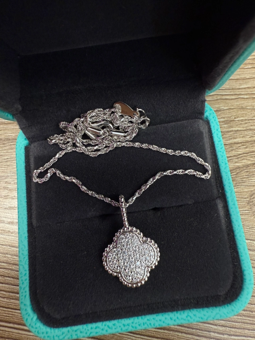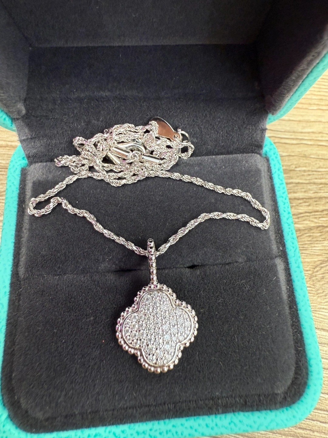 Selling a brand new lovely silver clover pendant necklace. Moissanite stone is very similar to diamond and shines very bright.